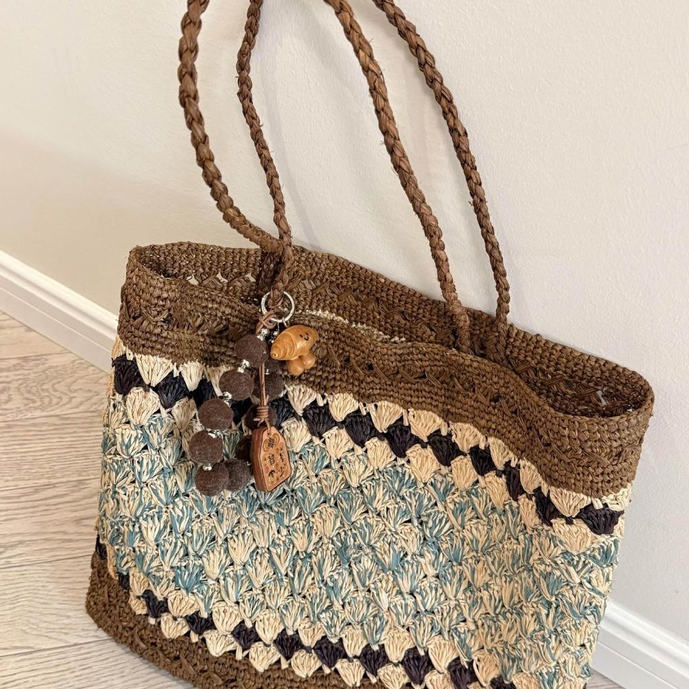 樂購小鋪 韓版镂空花朵單肩草編包跨境新款夏百搭草包編織包海邊度假沙灘包