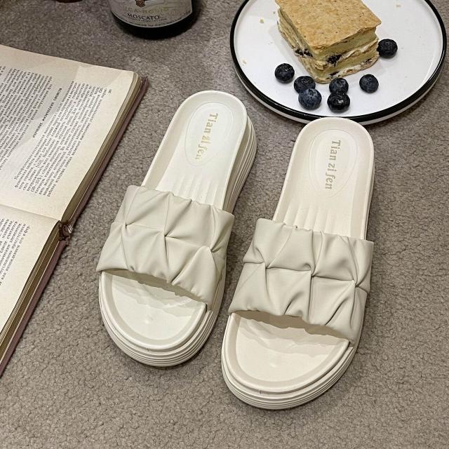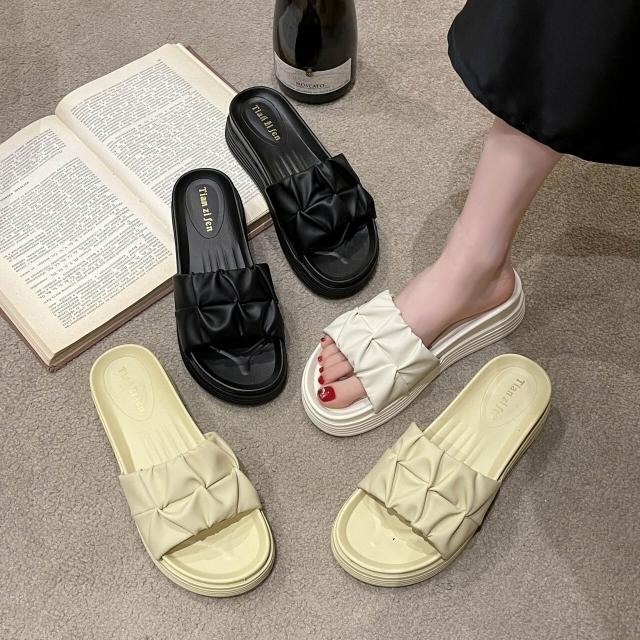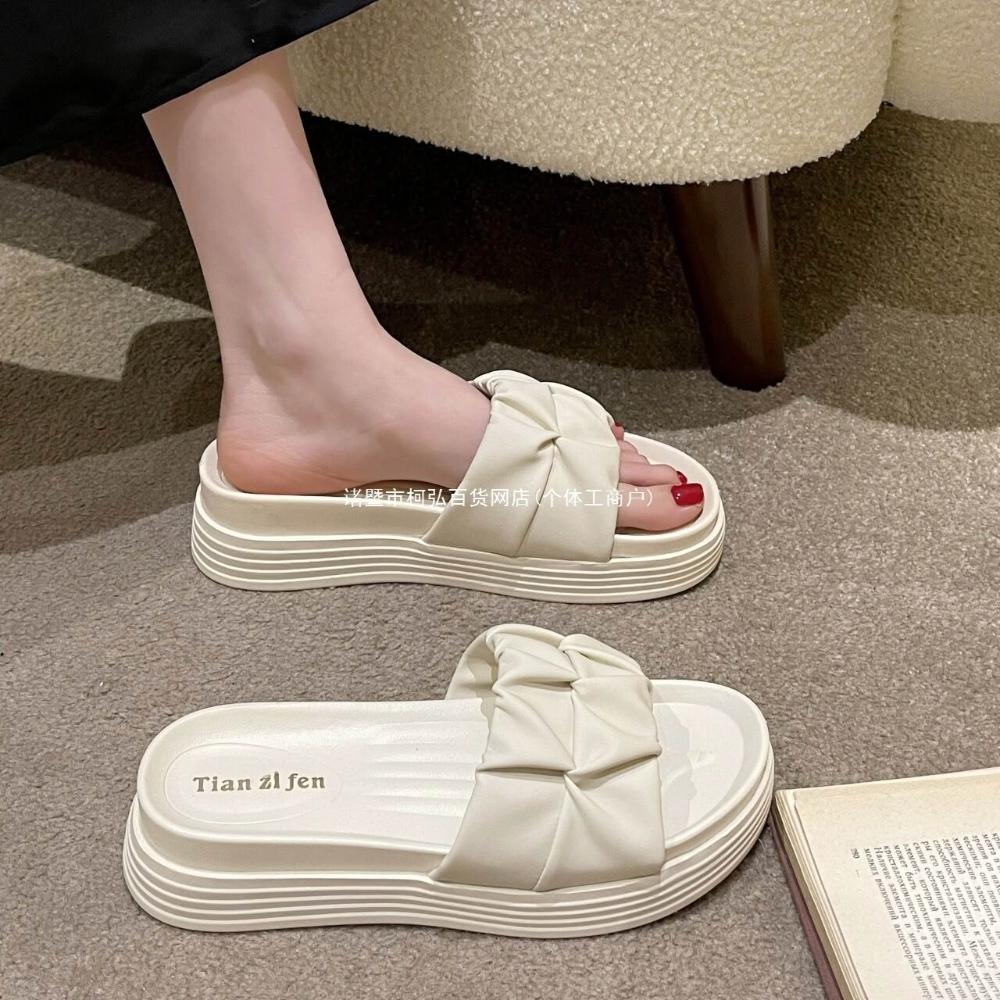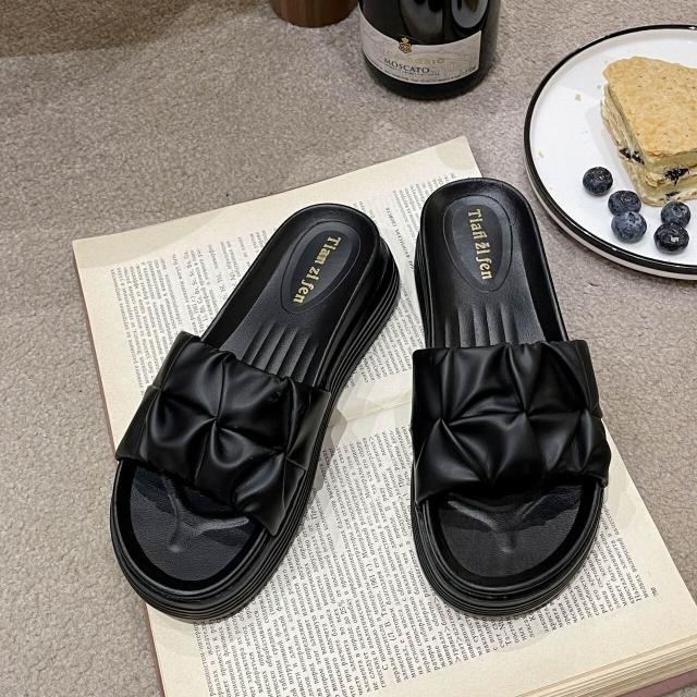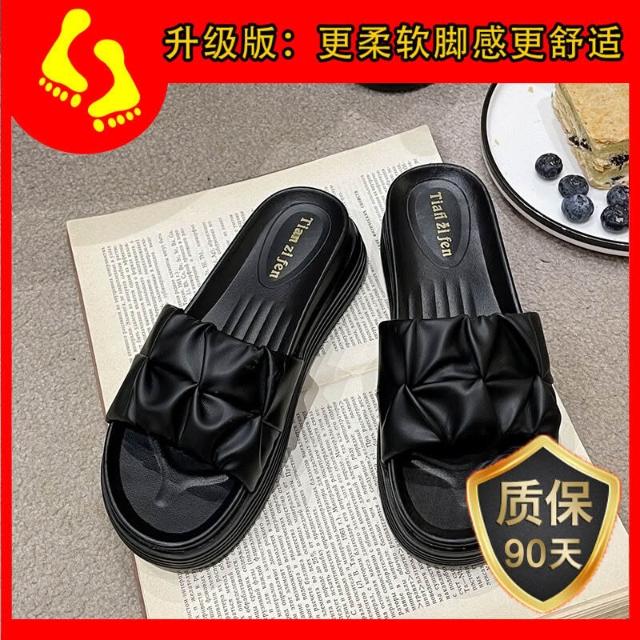 樂購小鋪 厚底時尚 孕婦涼鞋新款2025女士涼拖拖鞋女夏外穿沙灘小眾黑色 2