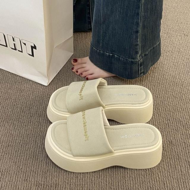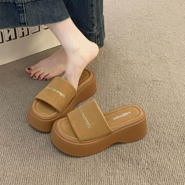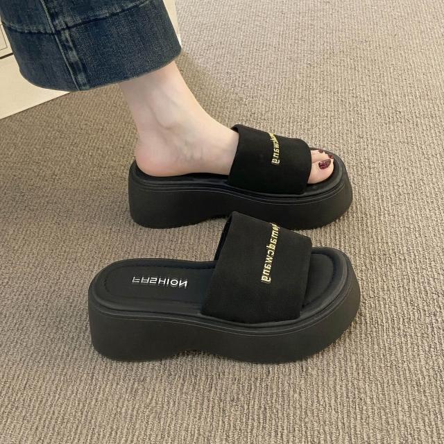 樂購小鋪 踩屎感厚底涼拖鞋女夏季外穿2025新款爆款松糕底女士一字涼拖鞋子 4