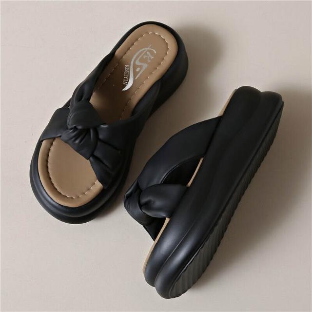 樂購小鋪 厚底拖鞋女夏外穿小碼松糕軟底一字拖2025新款百搭配裙子增高涼拖 81