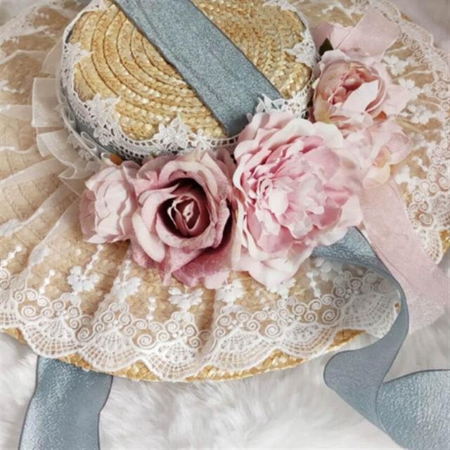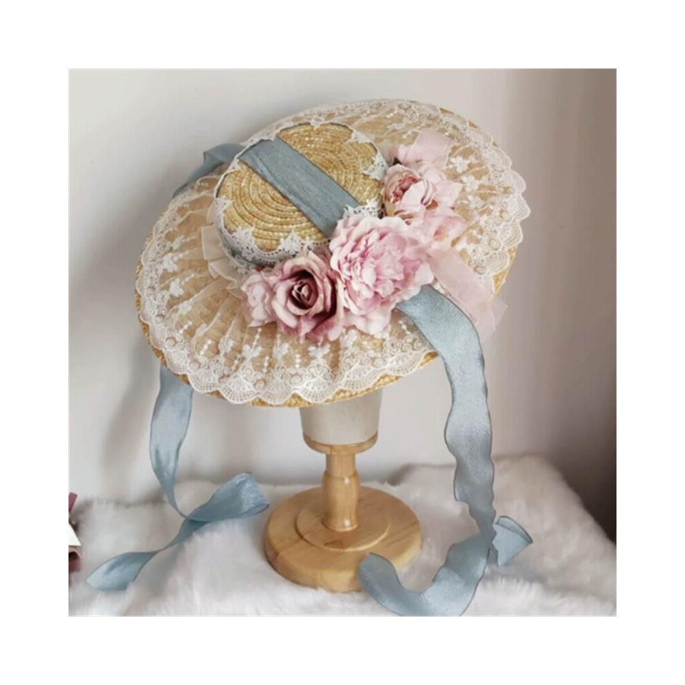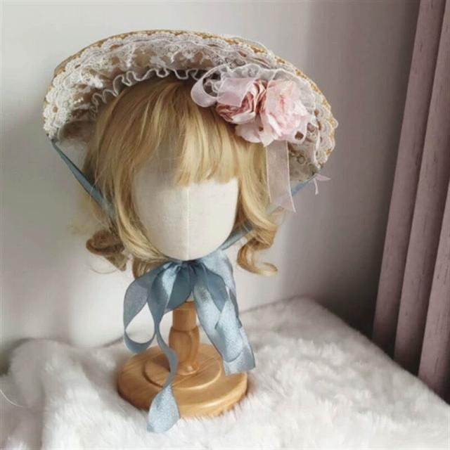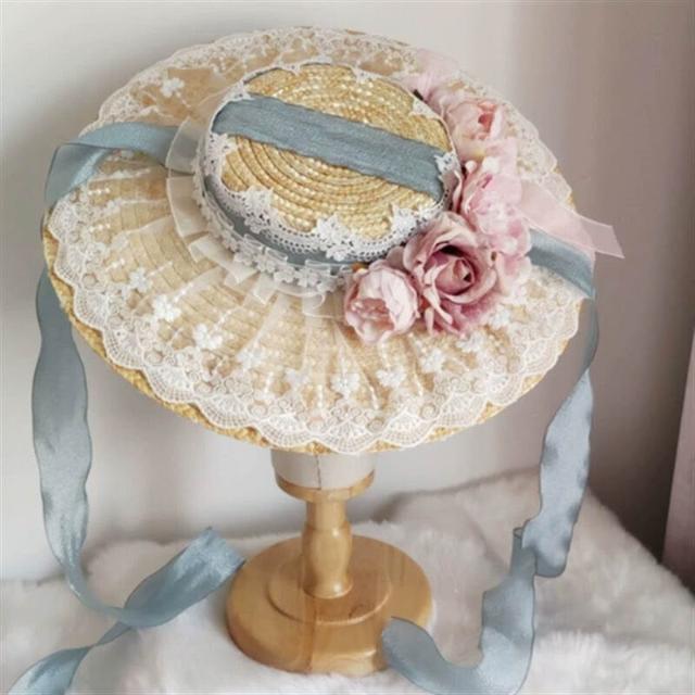 樂購小鋪 田園森女仙系洛麗塔甜美花朵草帽優雅防曬遮陽草帽法式系帶平頂帽 4