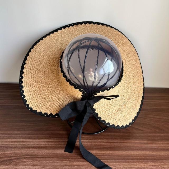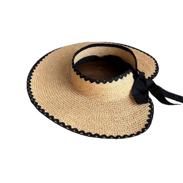 樂購小鋪 進口拉菲草空頂帽大帽檐全臉防曬草帽女生夏季出遊遮陽帽可卷收納 1 2
