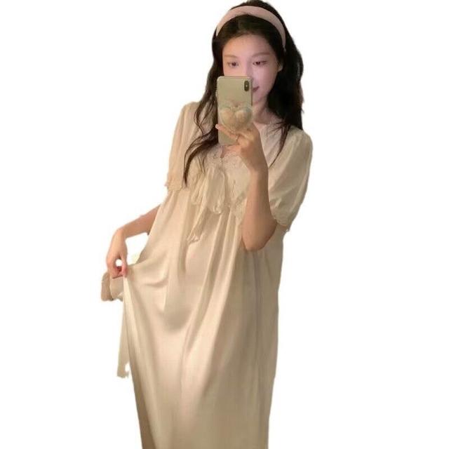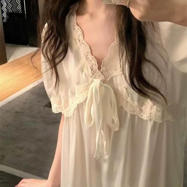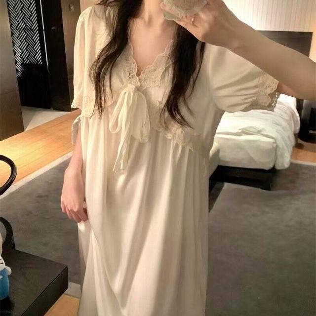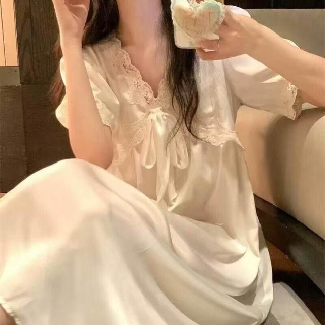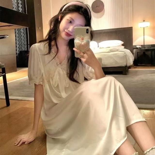 樂購小鋪 宮廷夏季新款甜美公主風冰絲睡裙圓領慵懶風法式 蝴蝶結家居服 26