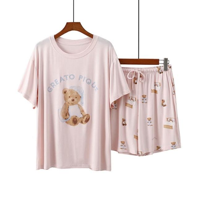 樂購小鋪 莫代爾女士睡衣卡通短袖短褲印花圓領套頭家居服透氣親膚可外穿 8 5