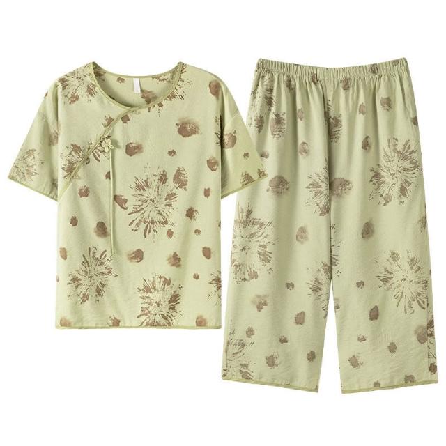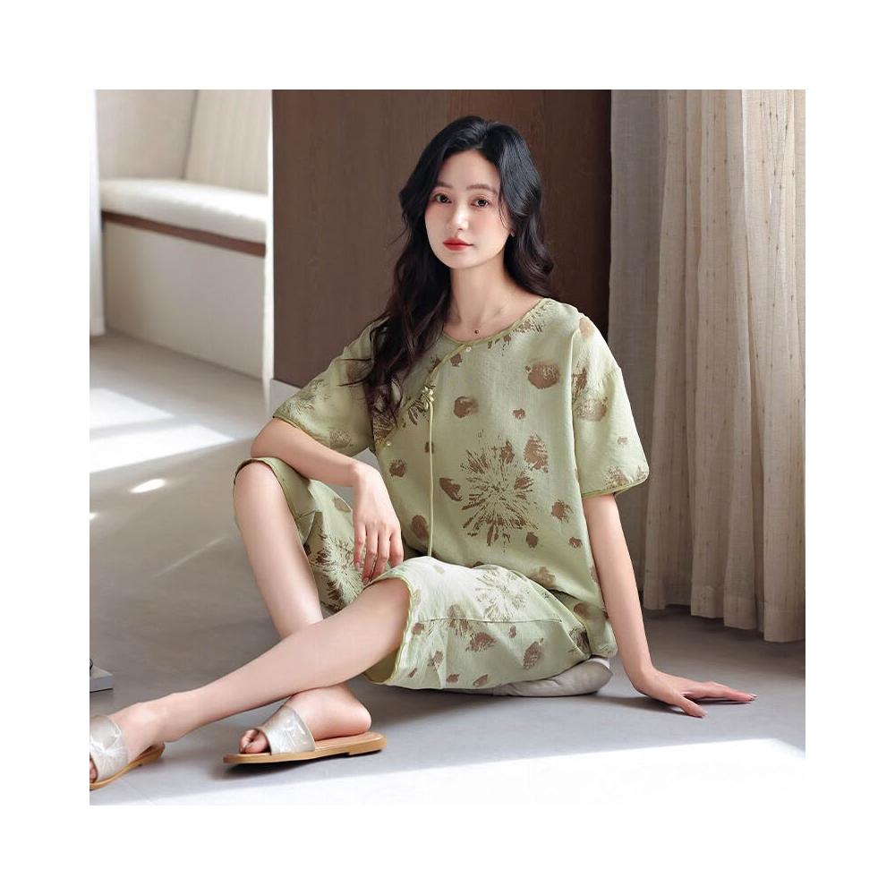 樂購小鋪 梭織棉紗布睡衣女夏季純棉短袖薄款夏天中國風夏款全棉媽媽家居服 253