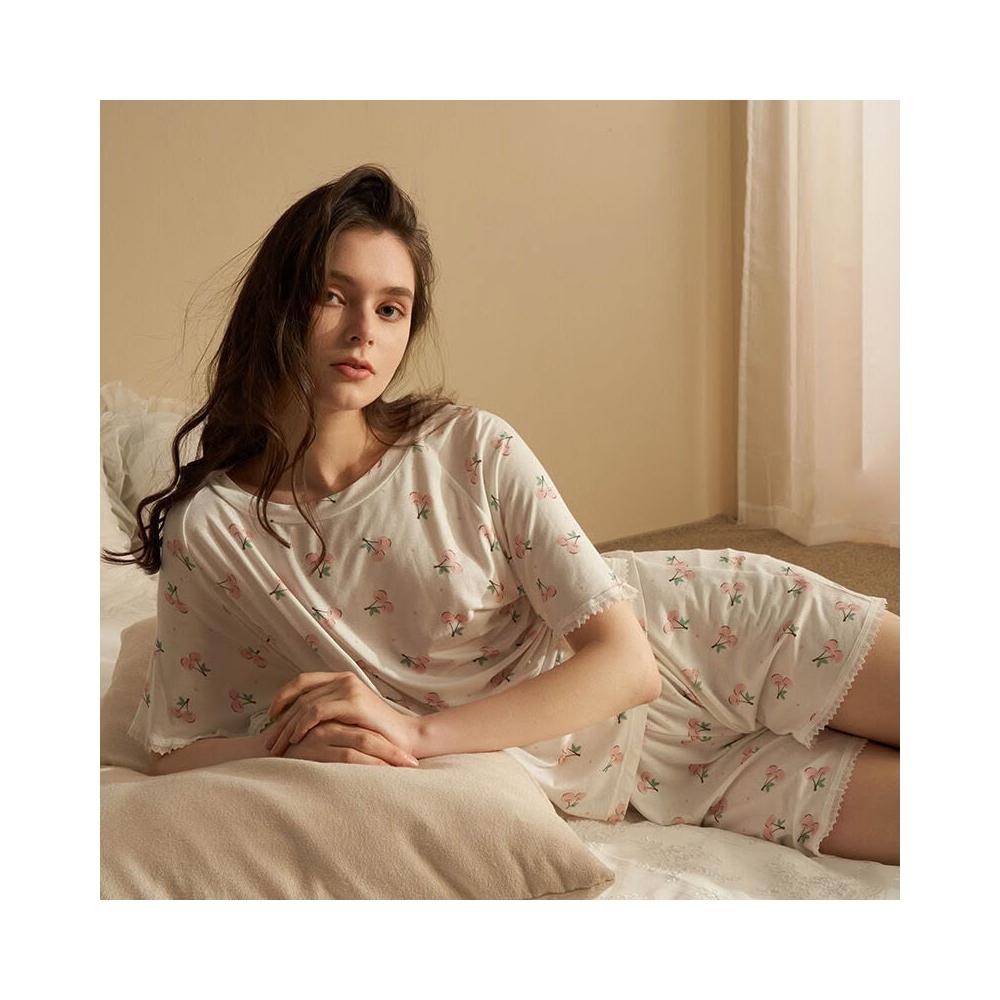 樂購小鋪 短袖短褲女士睡衣夏季新款印花小櫻桃兩件套可外穿家居服混批代發 620