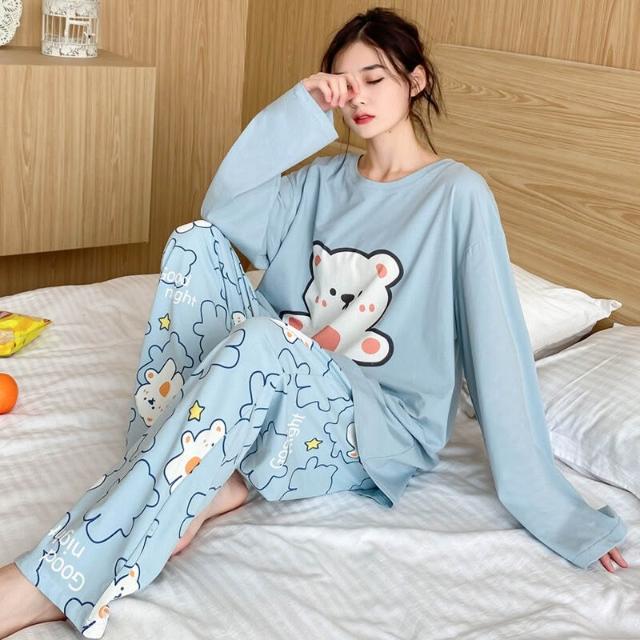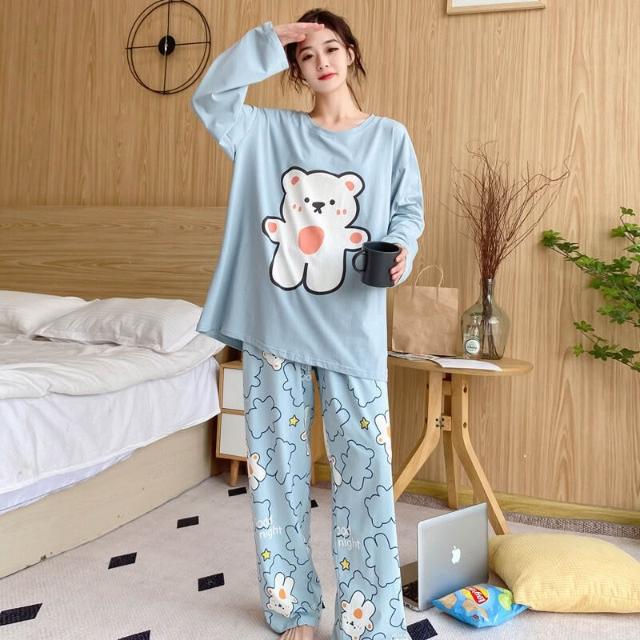 樂購小鋪 夏季新款短袖長褲睡衣套裝女士印花家居服薄款棉睡衣加大碼兩件套 22