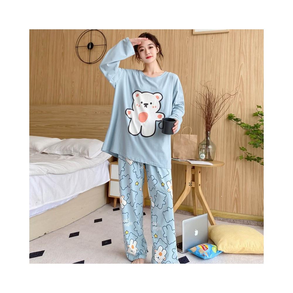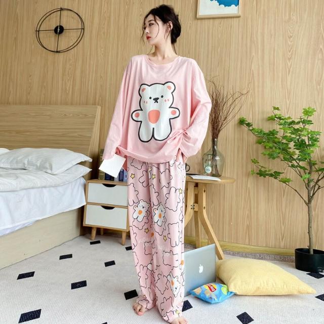 樂購小鋪 夏季新款短袖長褲睡衣套裝女士印花家居服薄款棉睡衣加大碼兩件套 22