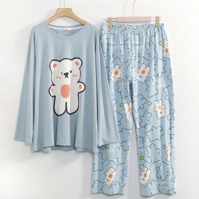 樂購小鋪 夏季新款短袖長褲睡衣套裝女士印花家居服薄款棉睡衣加大碼兩件套 22