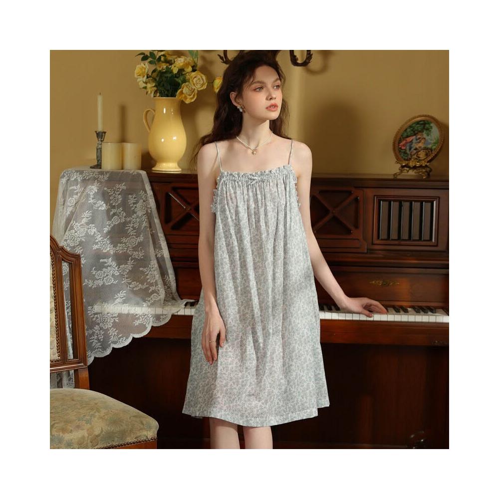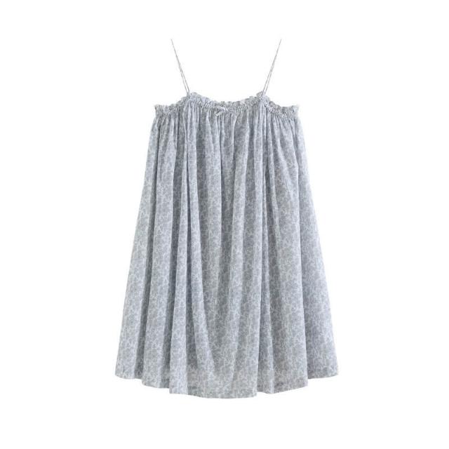 樂購小鋪 吊帶睡裙夏季新款薄款歐美印花度假風甜美居家棉短裙少女短款睡衣 971