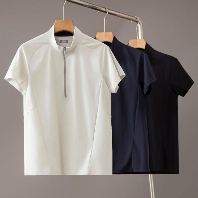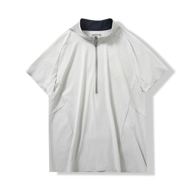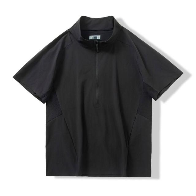 樂購小鋪 輕盈速幹 競速徒步半拉鏈套頭短袖夏季男士通風網眼加速排汗 恤衫 0