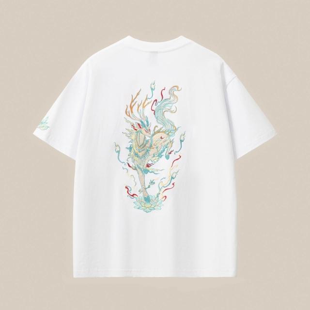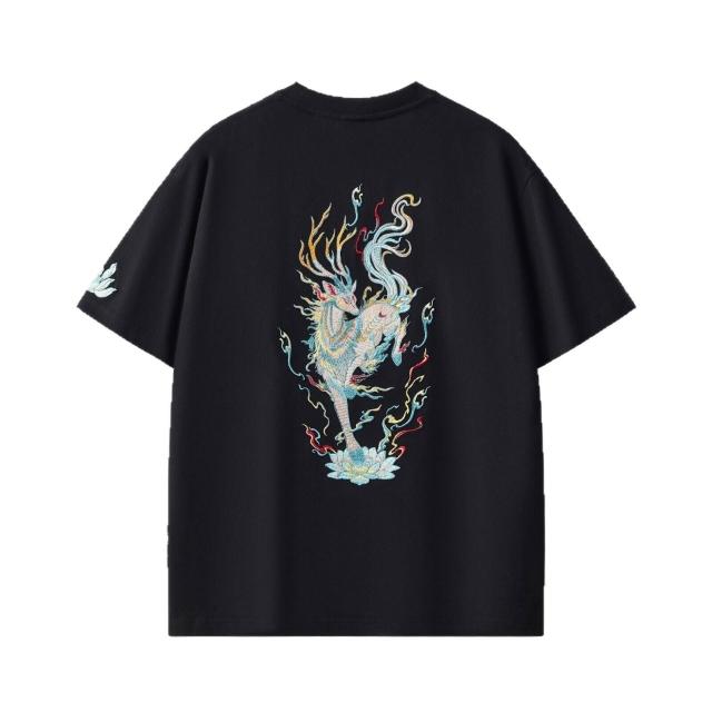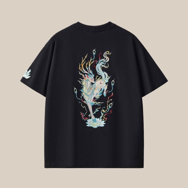 樂購小鋪 新款純棉短袖 恤男九色鹿刺繡圓領寬松版型大碼國潮男女同款 現貨 6 3
