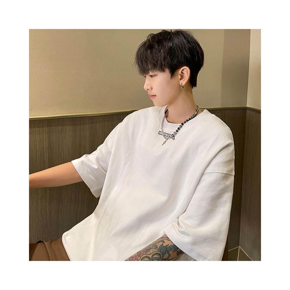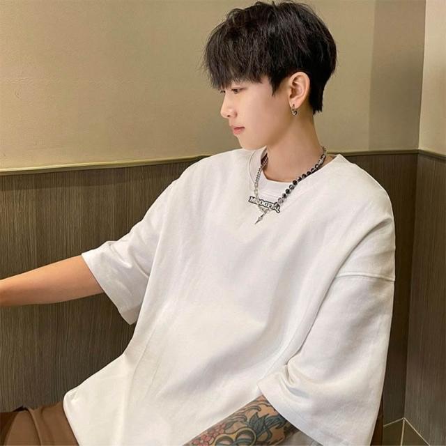 樂購小鋪 棉白色260重磅恤男夏季潮牌美式小領口印花短袖體恤 873