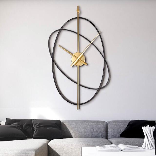 樂購小鋪 現代簡約鐘表西班牙鐵藝掛鐘金屬雙層客廳輕奢臥室靜音時鐘壁掛 65