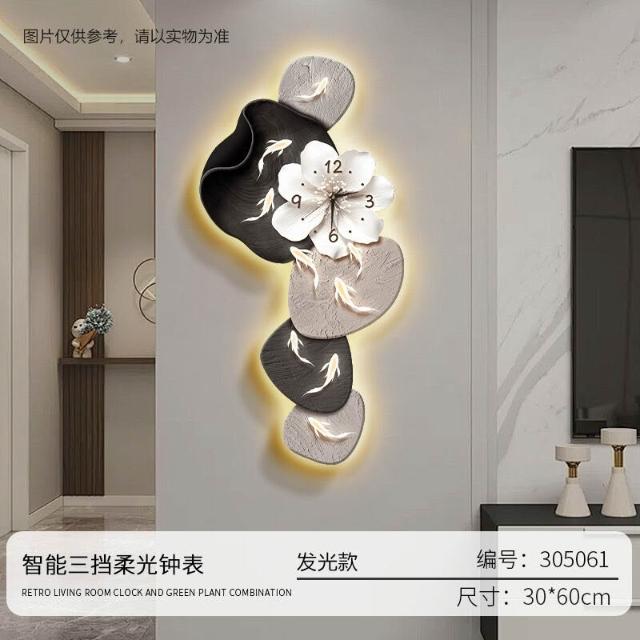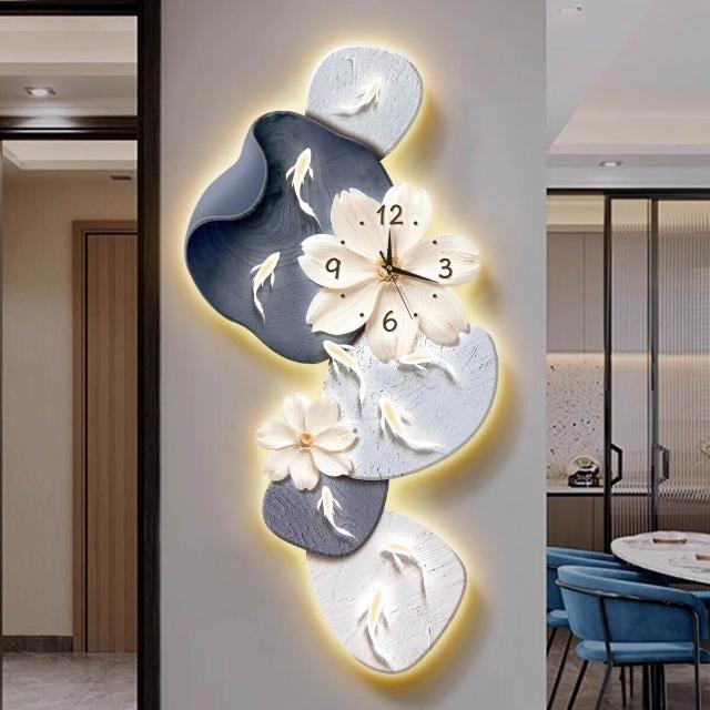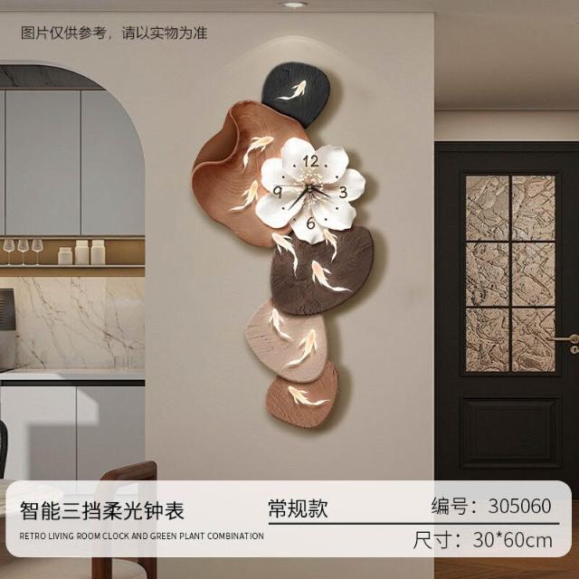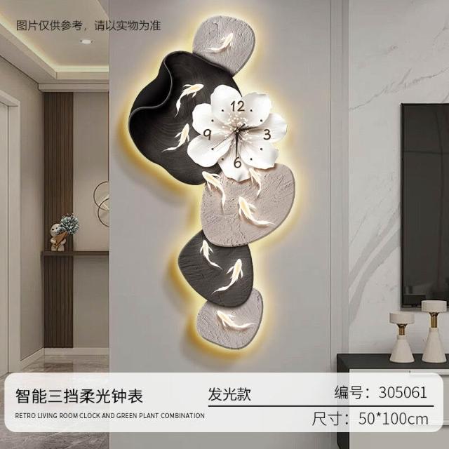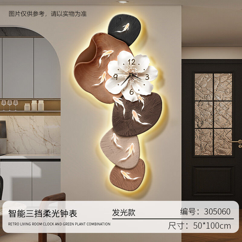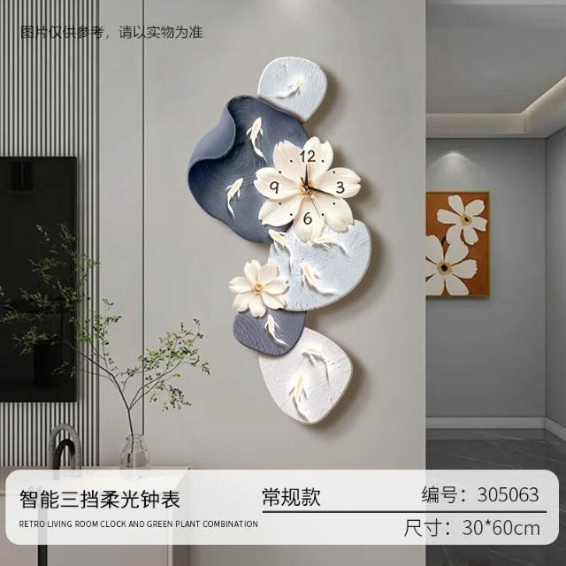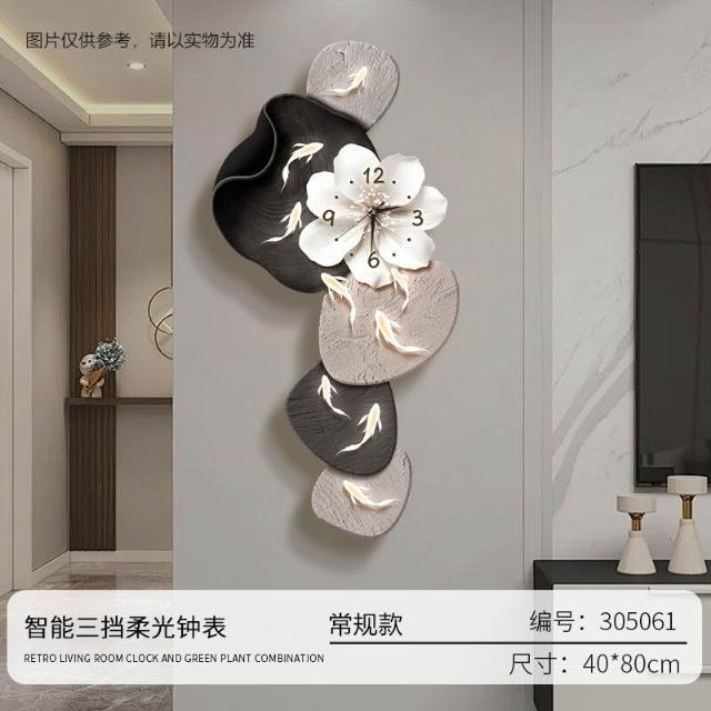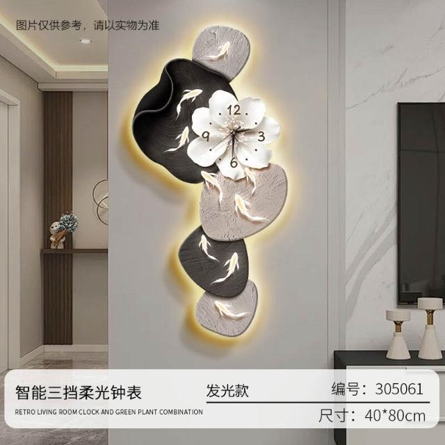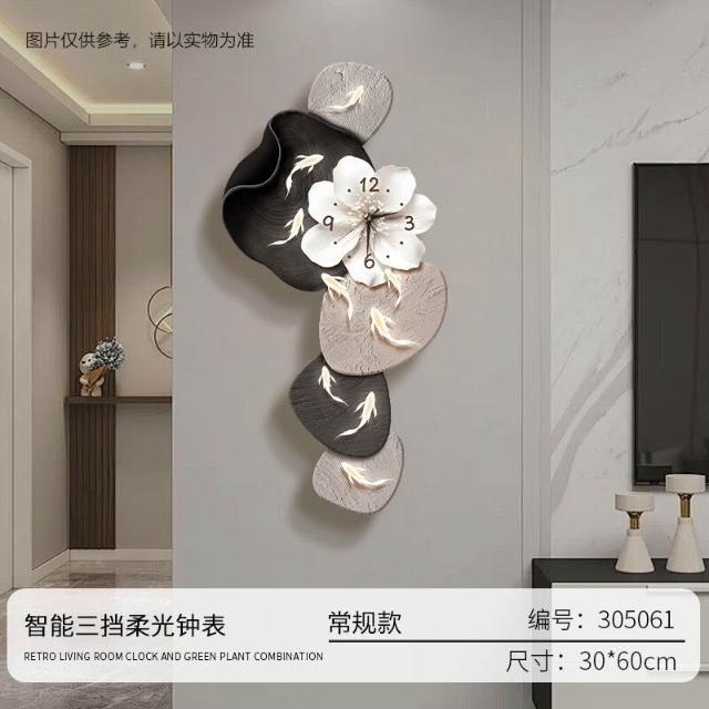 樂購小鋪 現代簡約九魚圖客廳鐘表創意靜音時鐘掛墻電視背景墻免打孔掛鐘 2