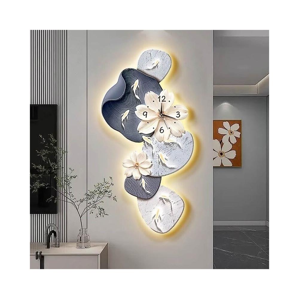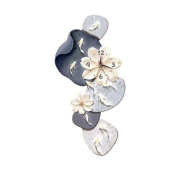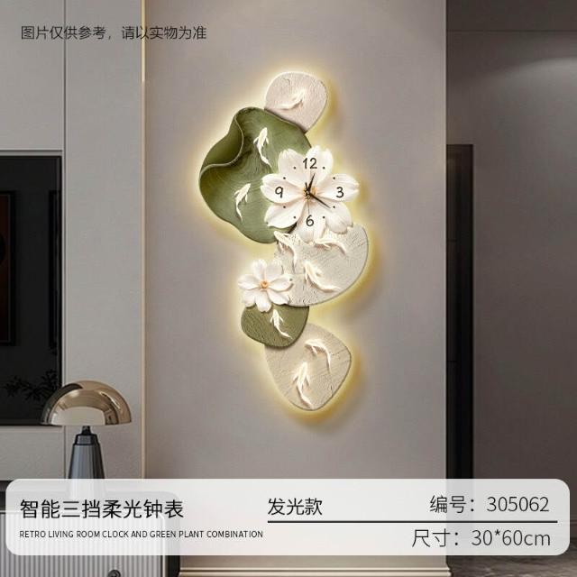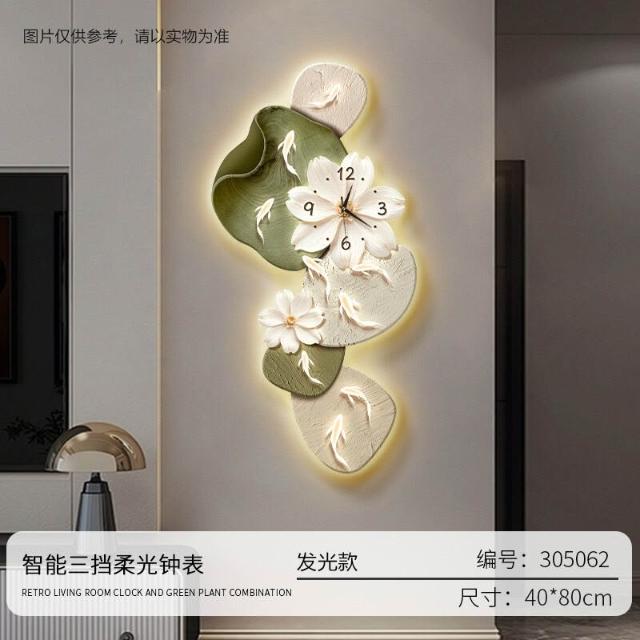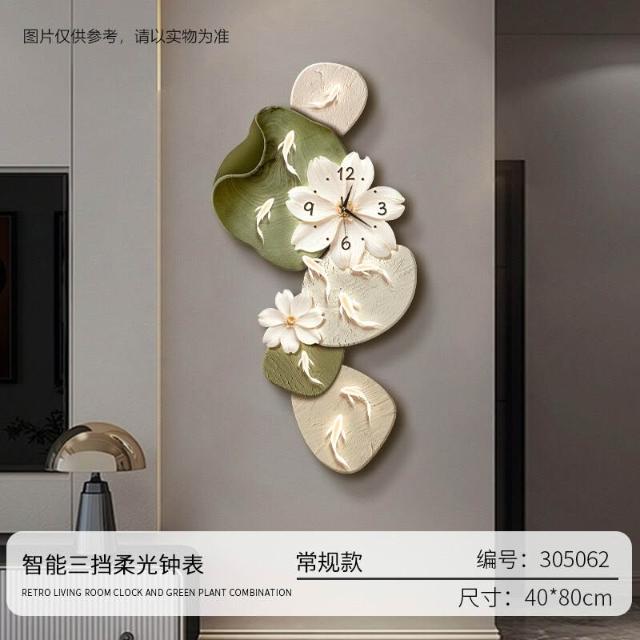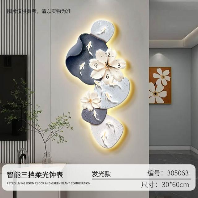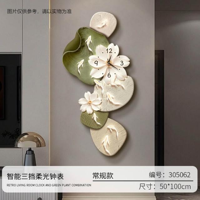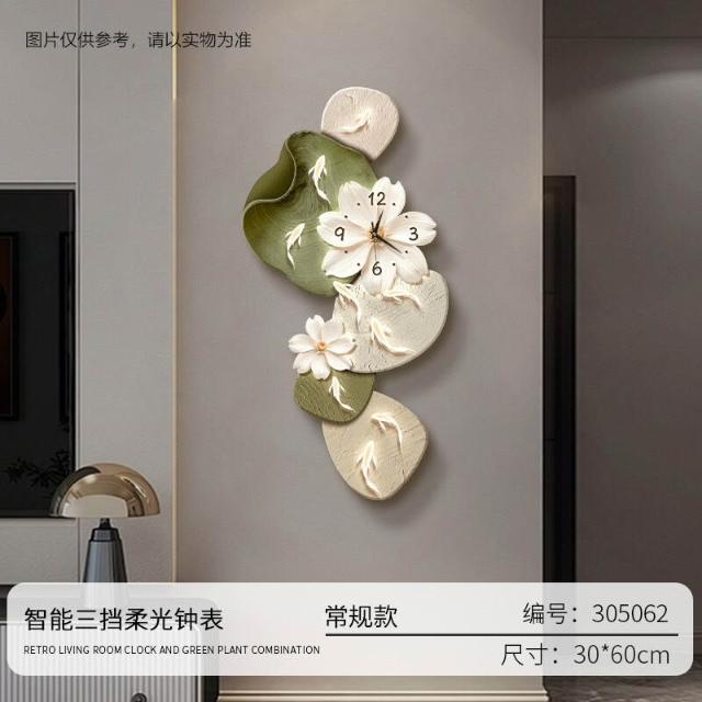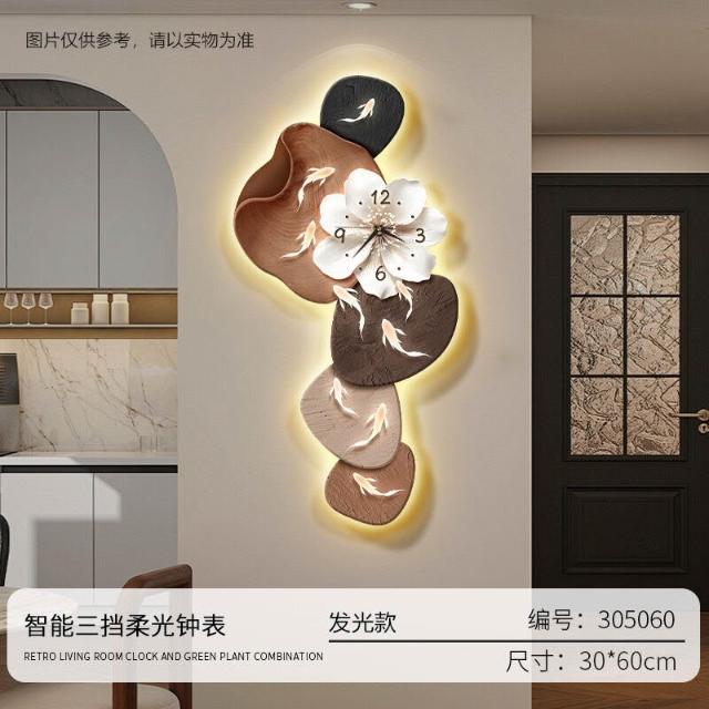 樂購小鋪 現代簡約九魚圖客廳鐘表創意靜音時鐘掛墻電視背景墻免打孔掛鐘 2