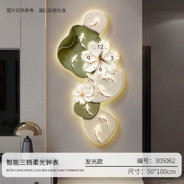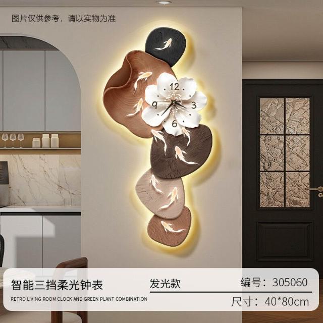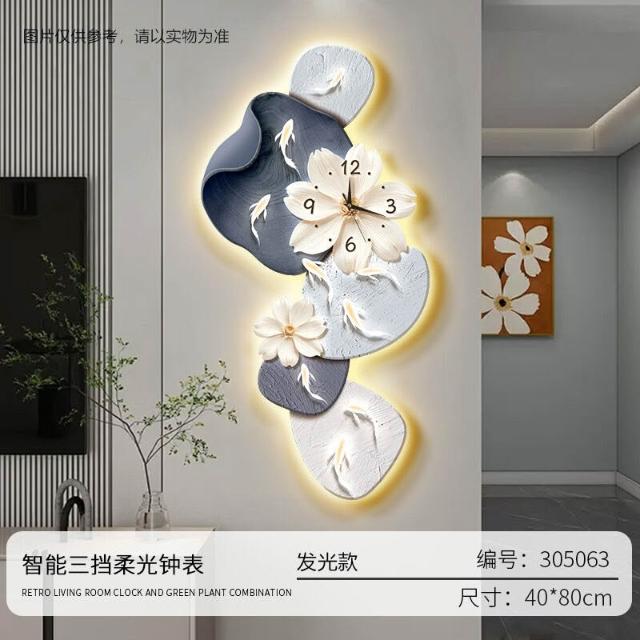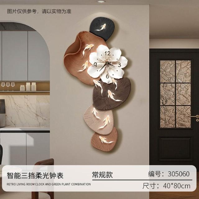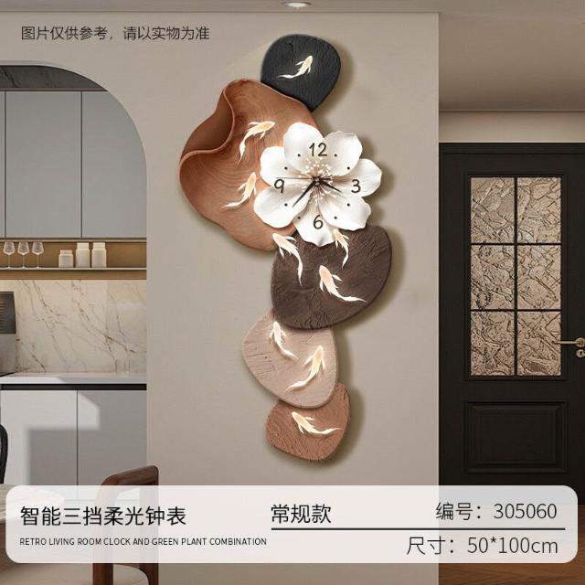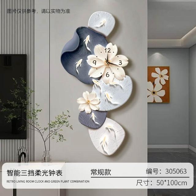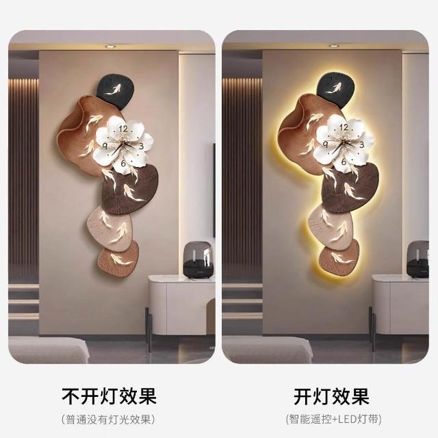 樂購小鋪 現代簡約九魚圖客廳鐘表創意靜音時鐘掛墻電視背景墻免打孔掛鐘 2