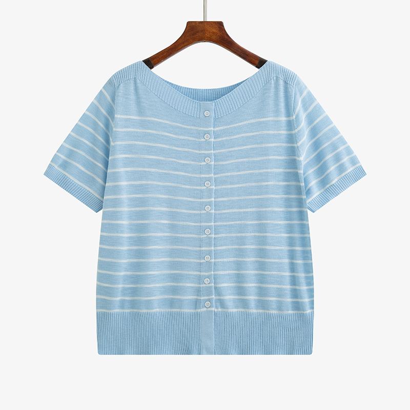 樂購小鋪 大碼女裝一字領短袖 恤女條紋衫2026夏款胖 百搭顯瘦針織衫23922 46