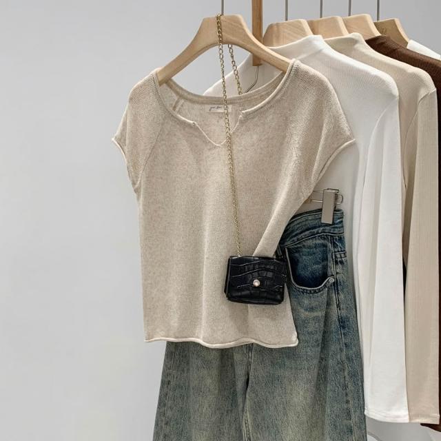 樂購小鋪 實拍萊賽爾天絲亞麻高級感 領短袖針織衫女夏2026新款慵懶風上衣 34