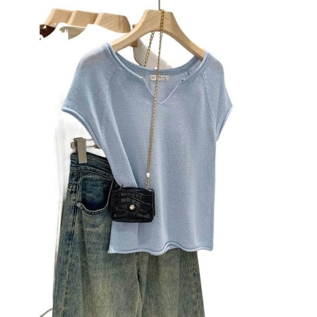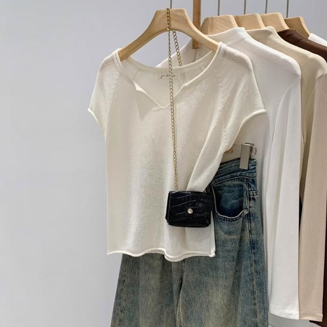樂購小鋪 實拍萊賽爾天絲亞麻高級感 領短袖針織衫女夏2026新款慵懶風上衣 34