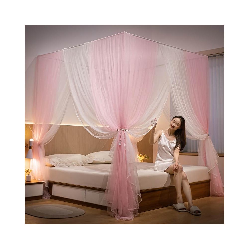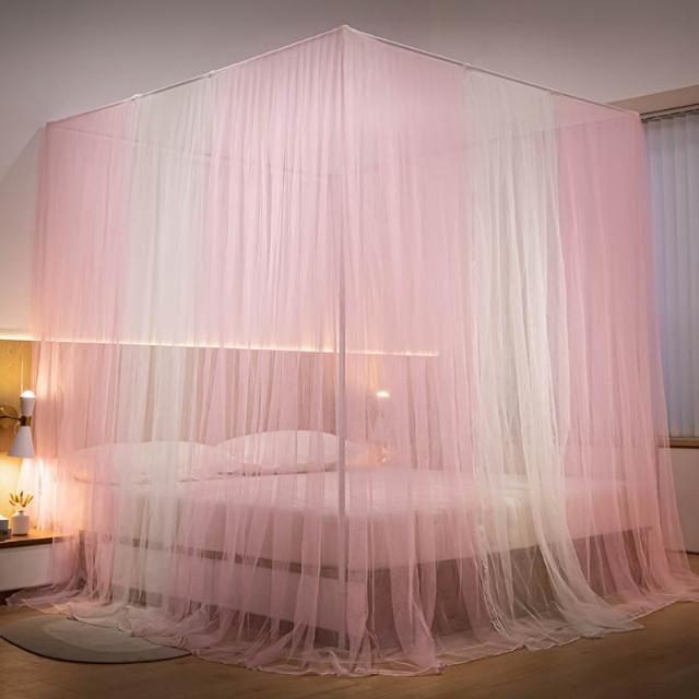 樂購小鋪 公主風蚊帳家用2023新款高級老式臥室支架床簾幔紗落地紋賬三開門 2 4