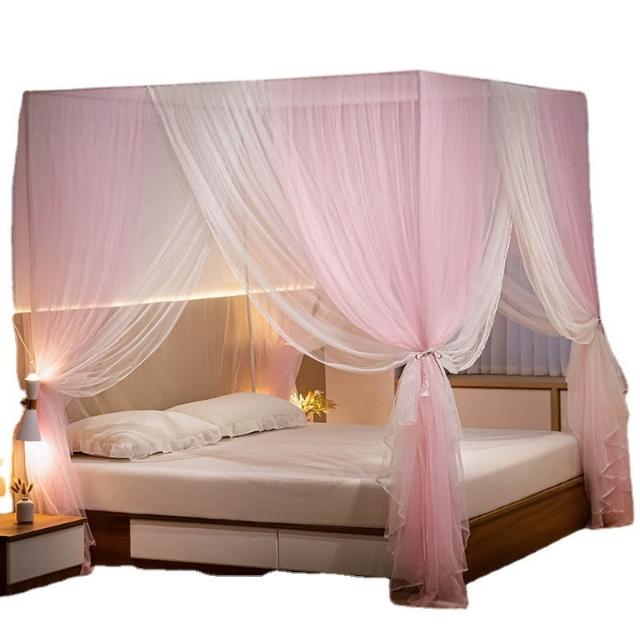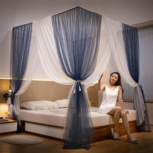 樂購小鋪 公主風蚊帳家用2023新款高級老式臥室支架床簾幔紗落地紋賬三開門 2 4