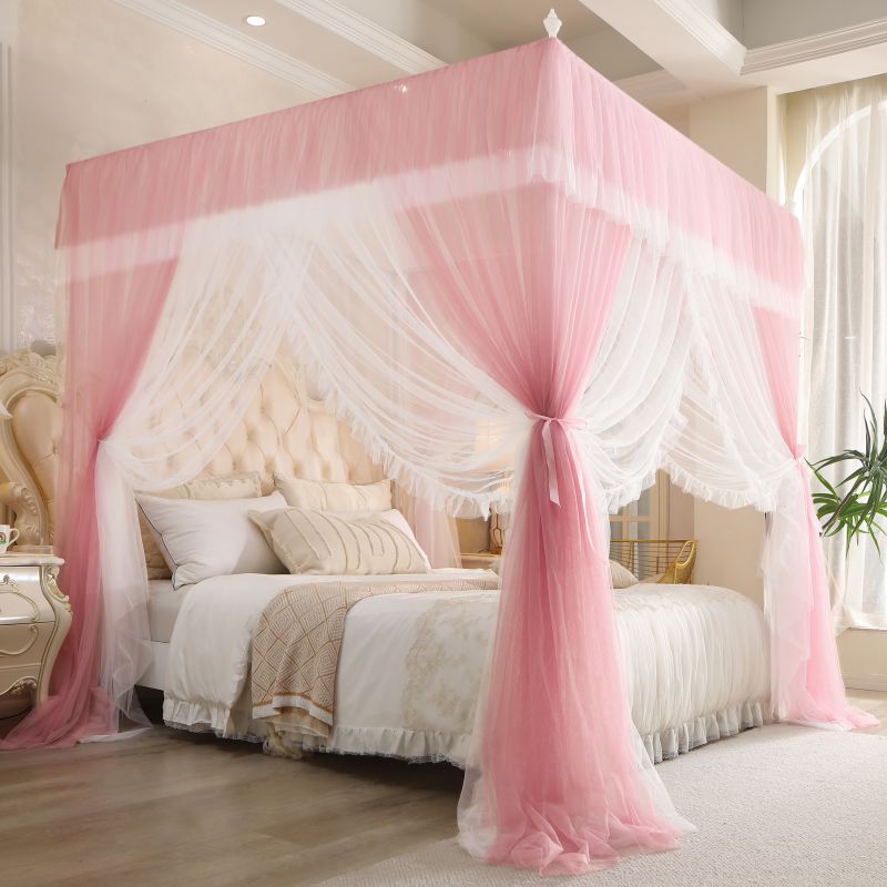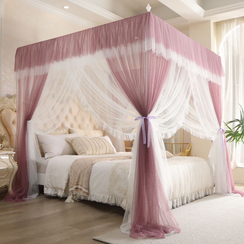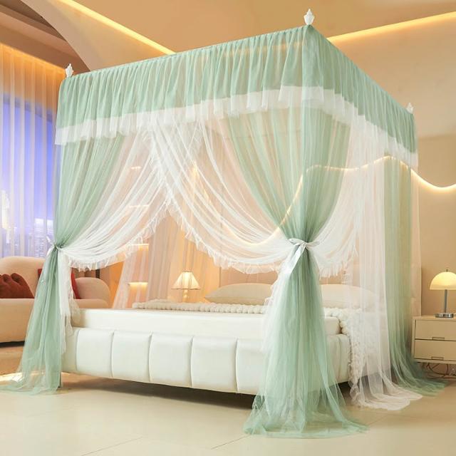 樂購小鋪 公主風方頂蚊帳雙層紗落地蚊帳加密防蚊防摔免安裝高檔宮廷風蚊帳 6