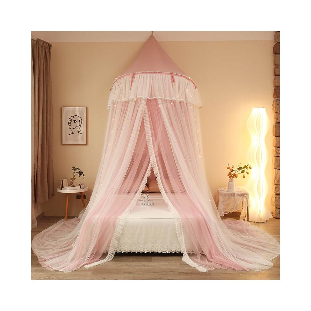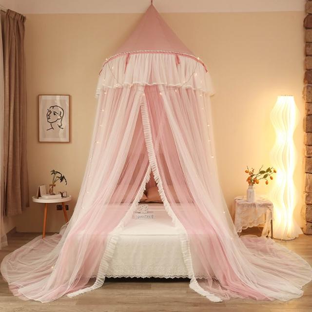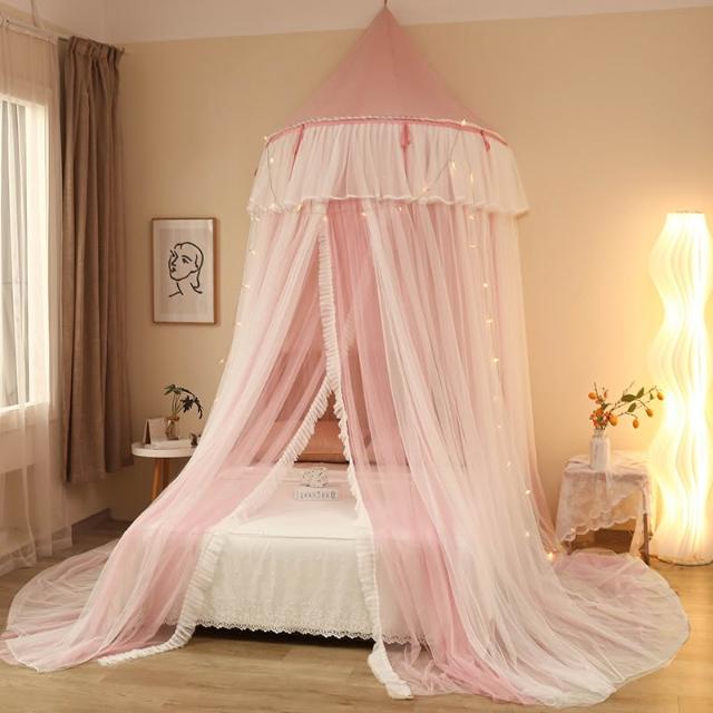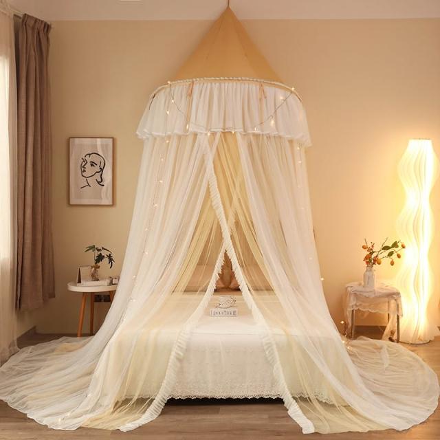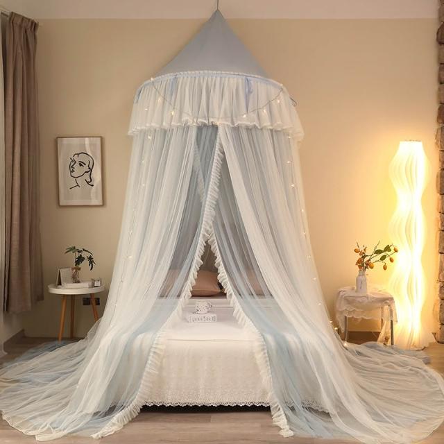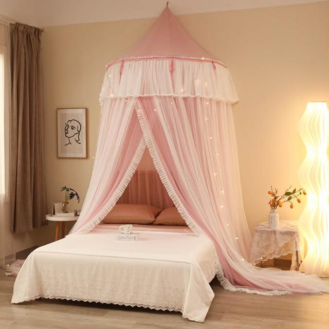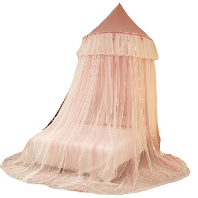 樂購小鋪 夏季新款公主風半圓吊頂蚊帳床頭裝飾床幔圓頂雙層紗睡帳跨境外貿 383