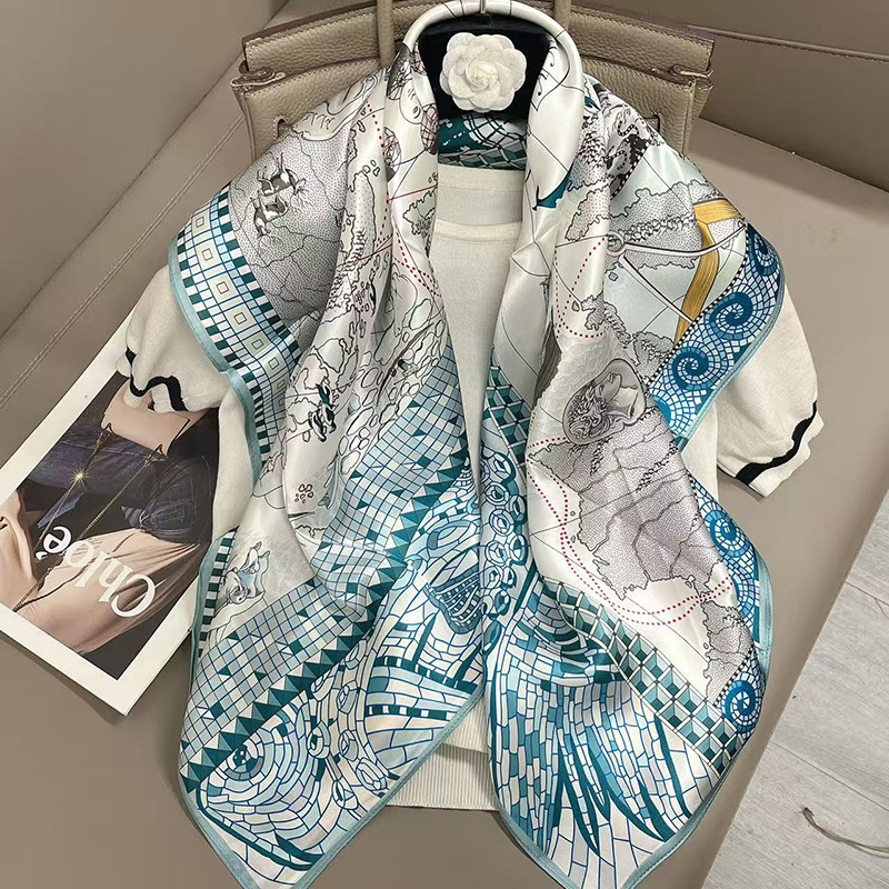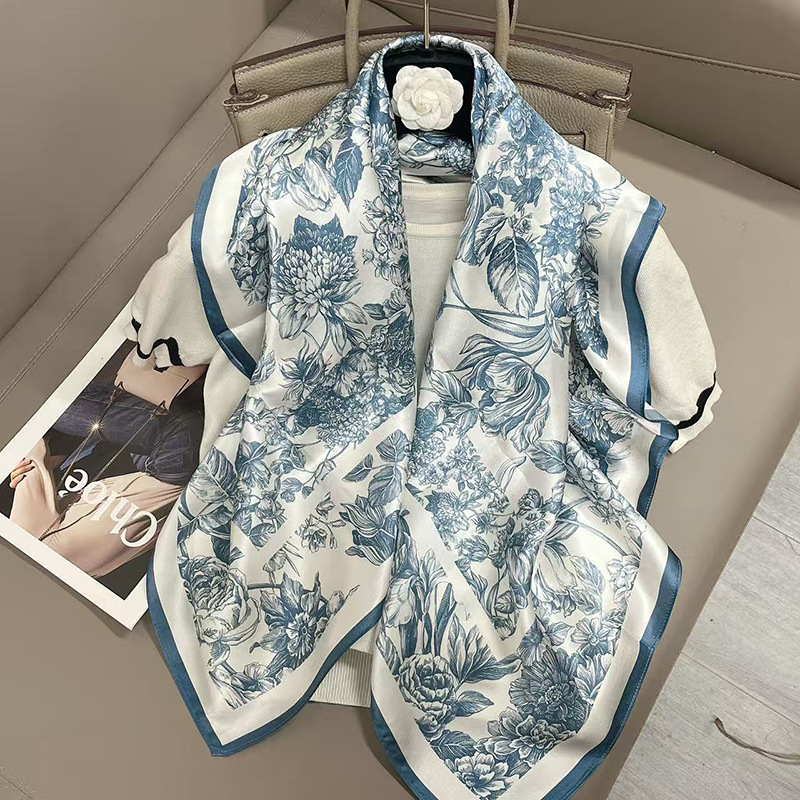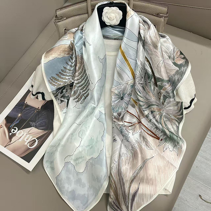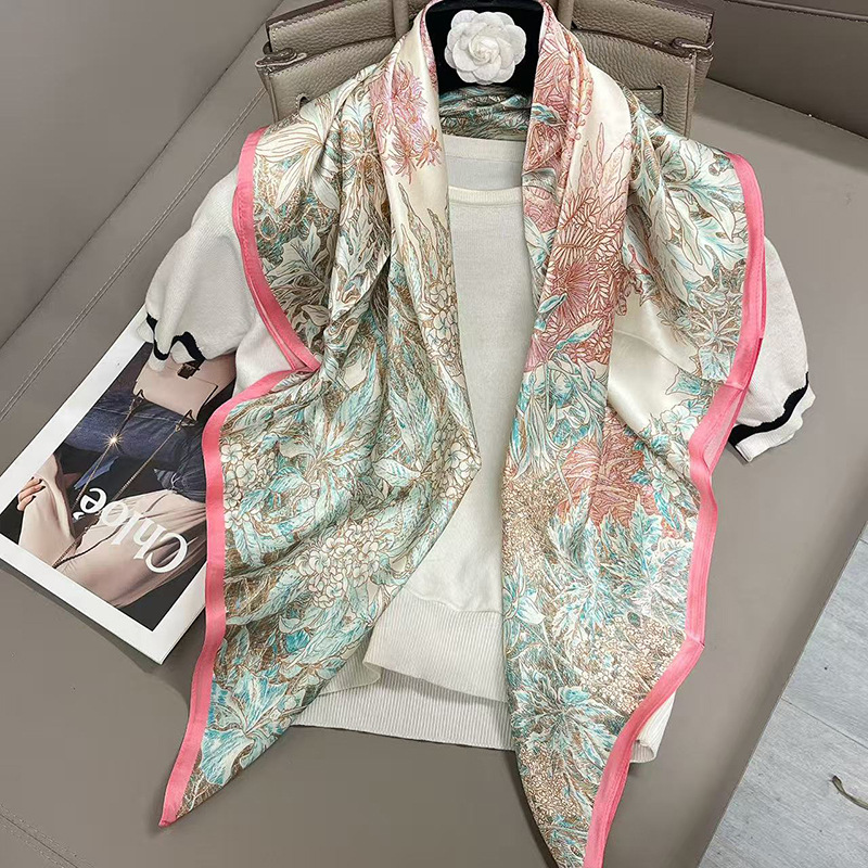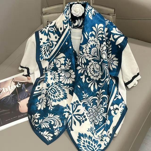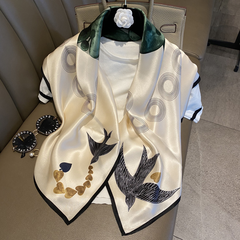 樂購小鋪 燕子圍巾女桑蠶絲真絲絲巾女90大方巾春季新款真絲方巾圍巾批發 1