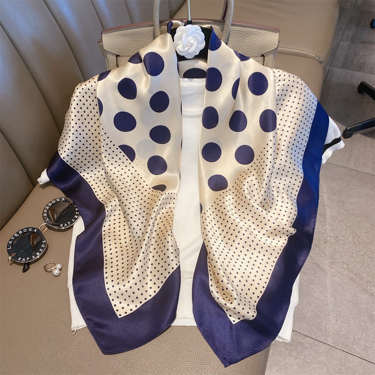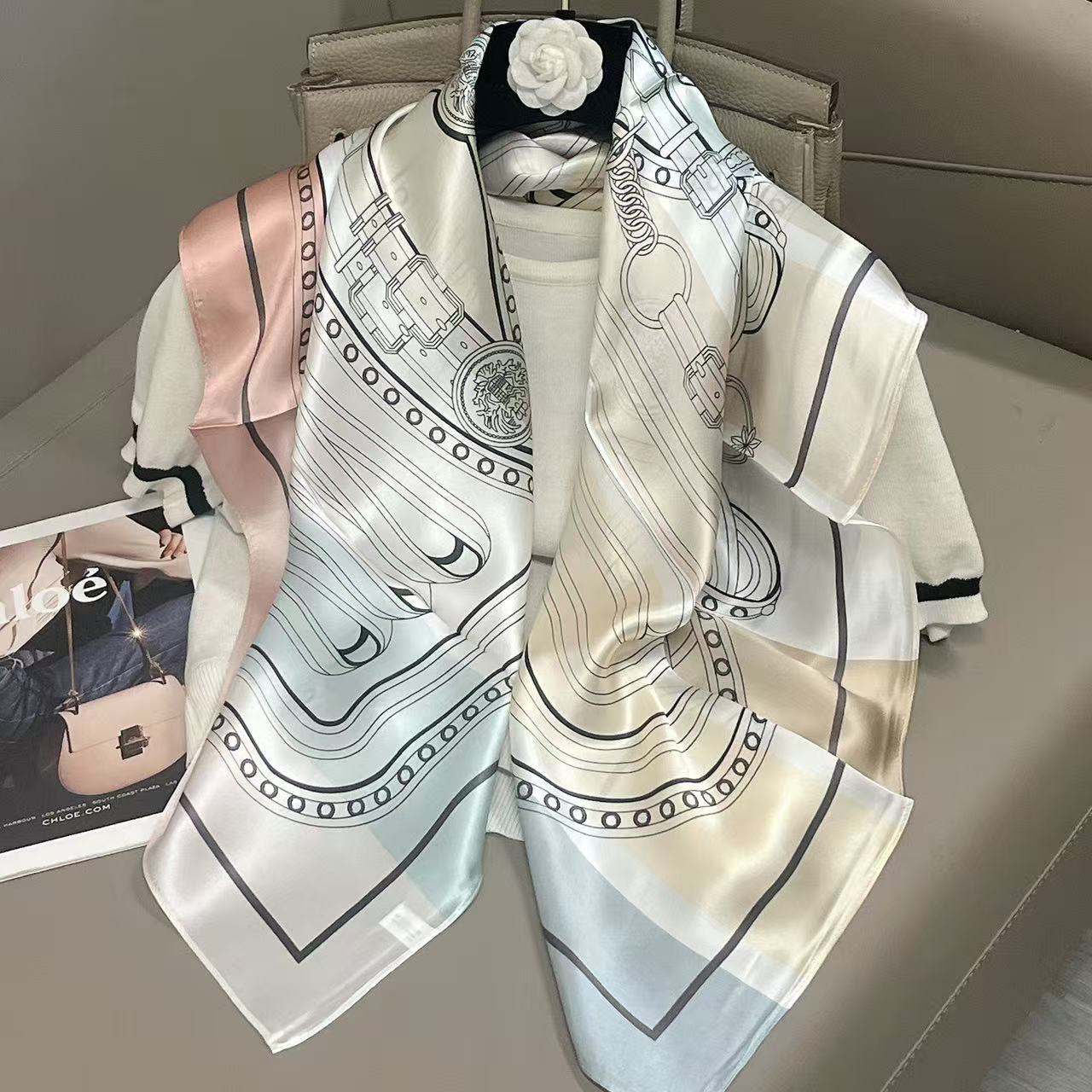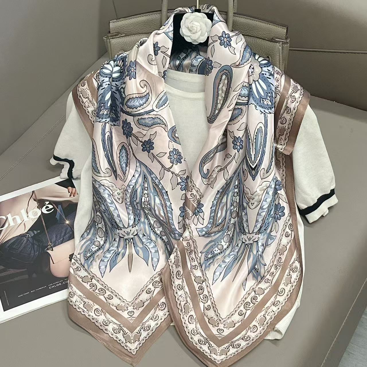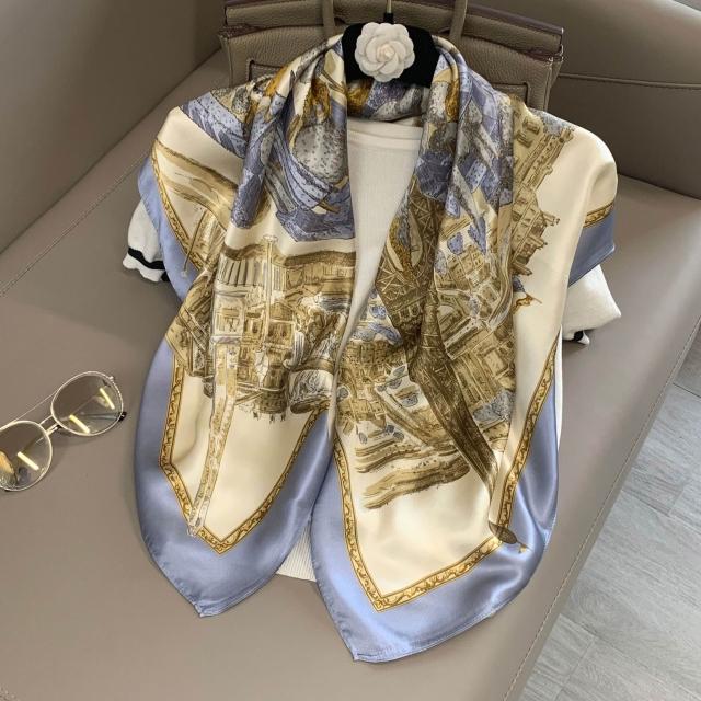 樂購小鋪 燕子圍巾女桑蠶絲真絲絲巾女90大方巾春季新款真絲方巾圍巾批發 1