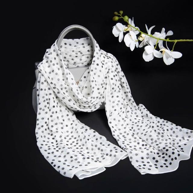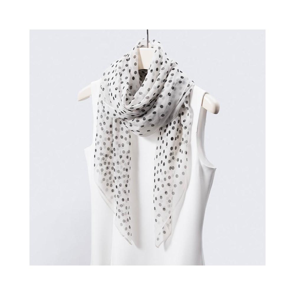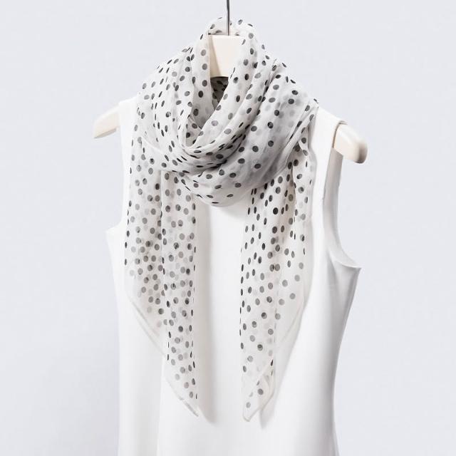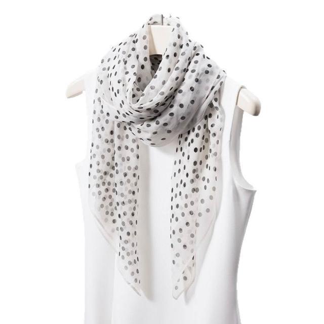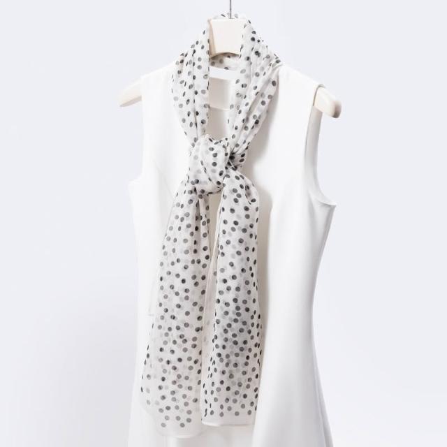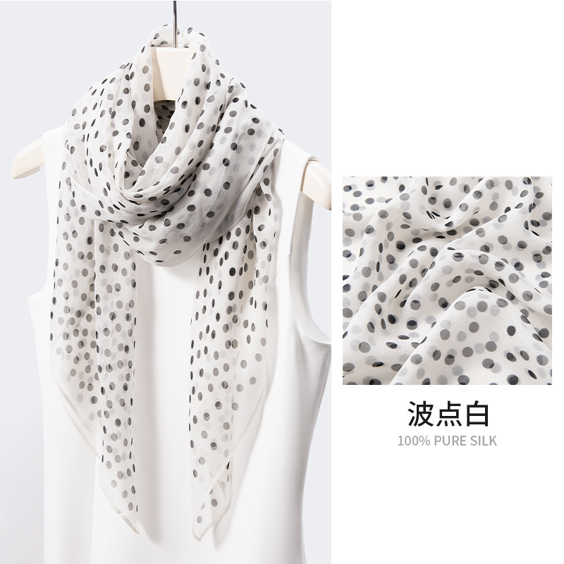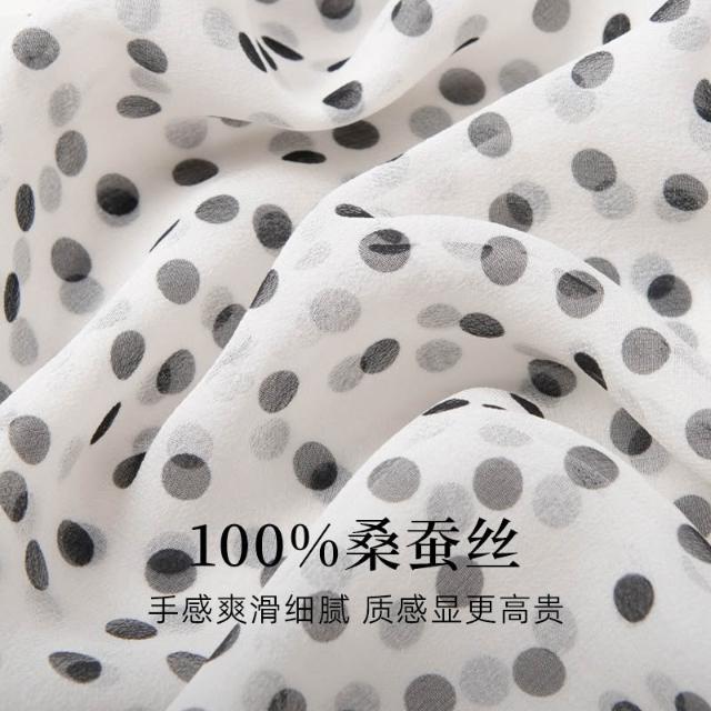 樂購小鋪 真絲絲巾波點印花白色長巾100桑蠶絲簡約大方百搭絲巾長條高級感 70
