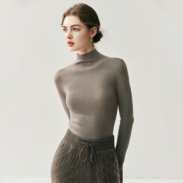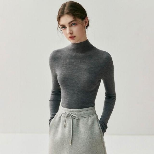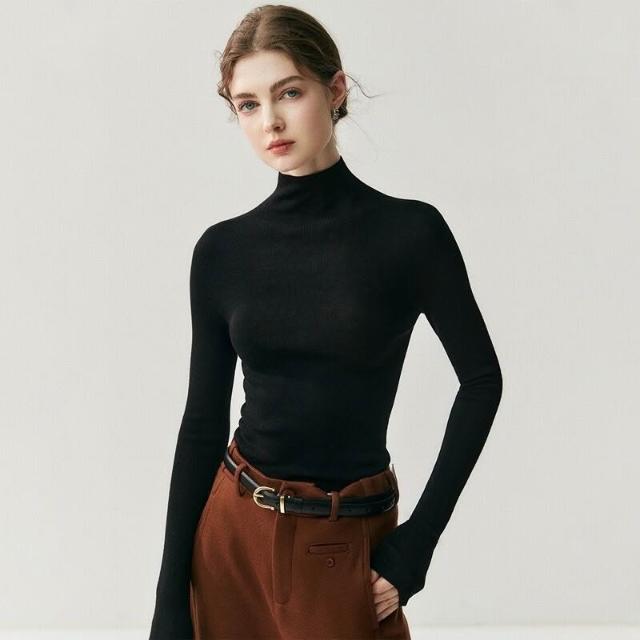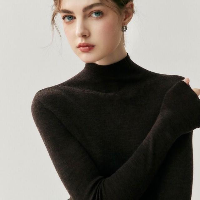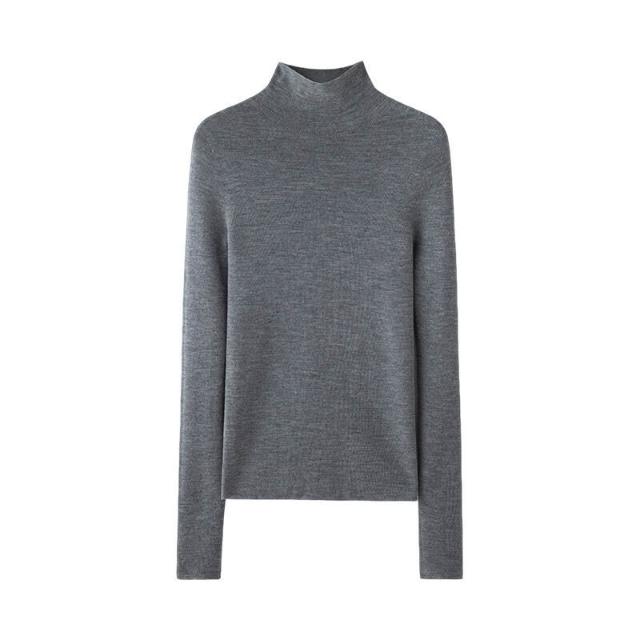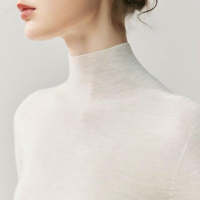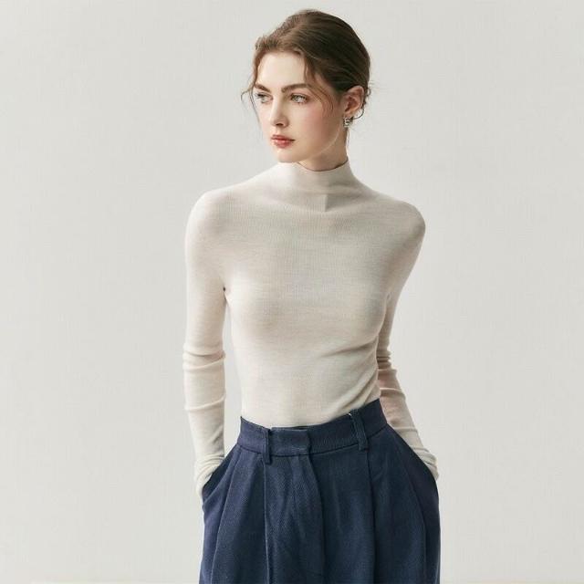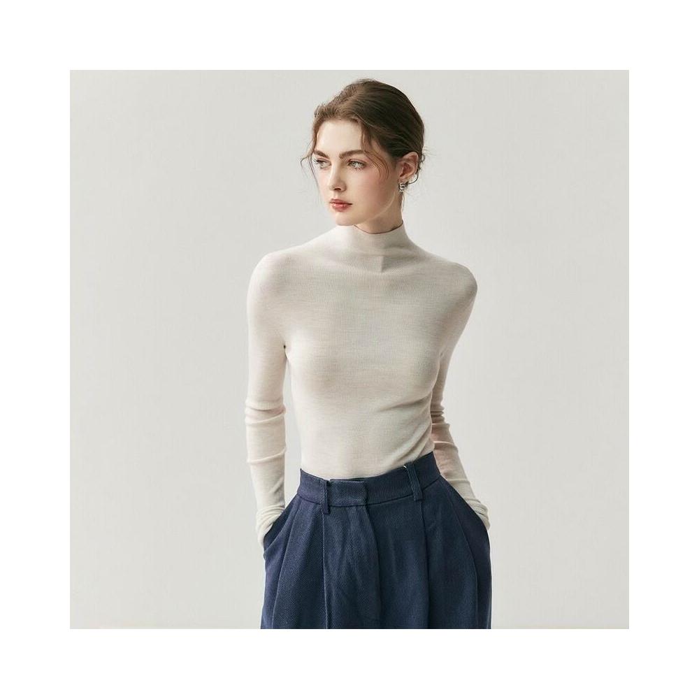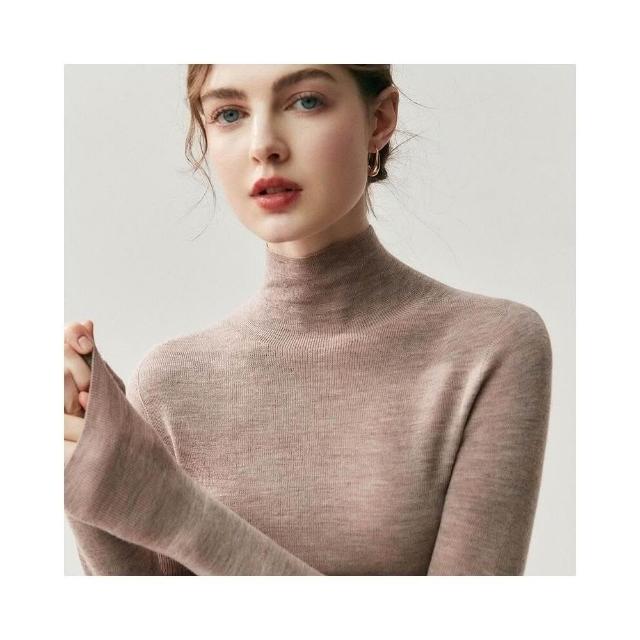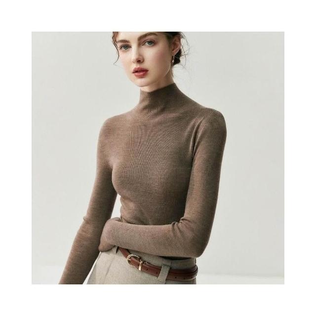簡優 可機洗無縫一體精紡純羊毛衫女款半高領揚子紗 內搭打底衫 小香風