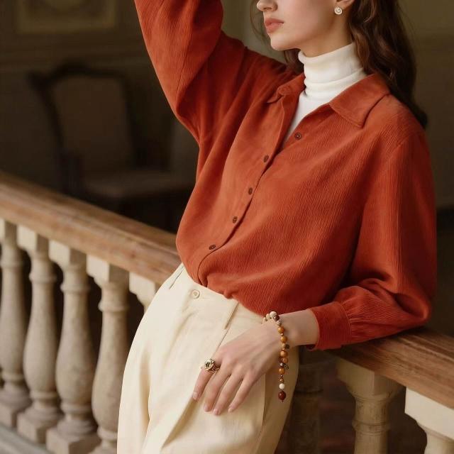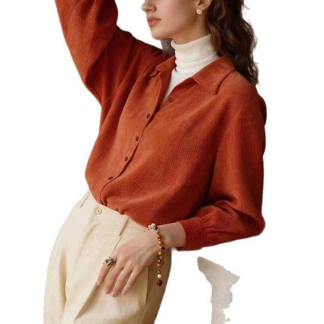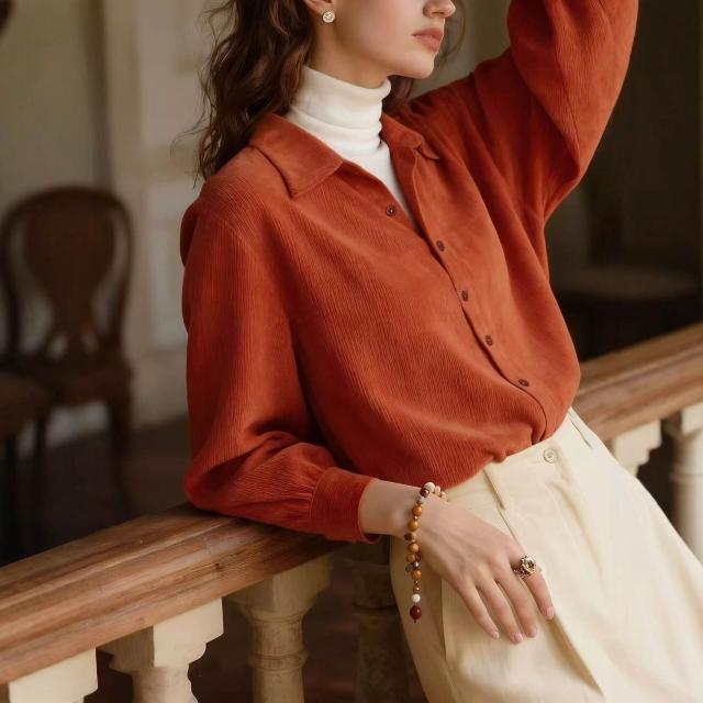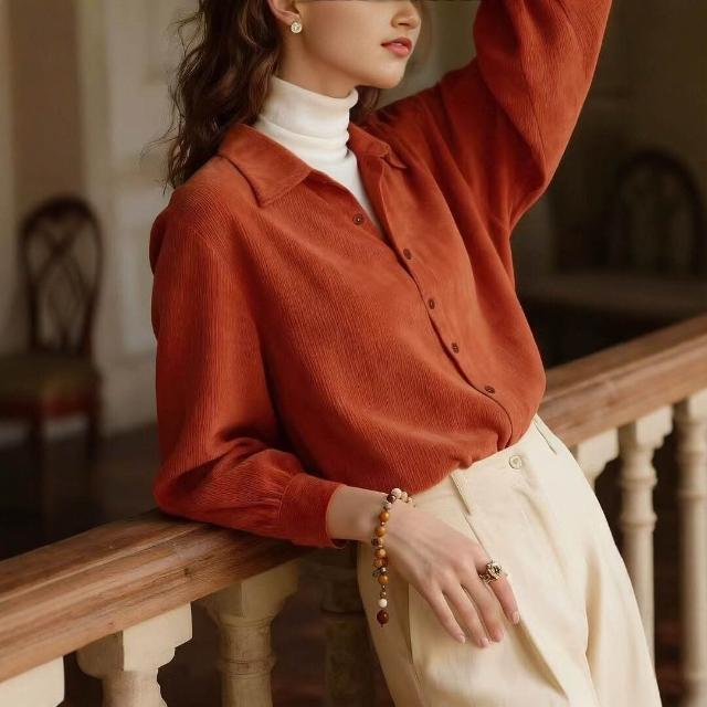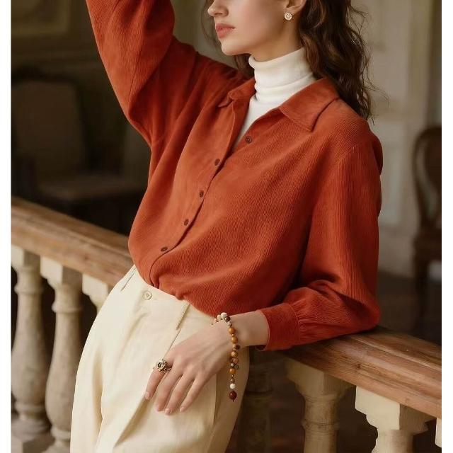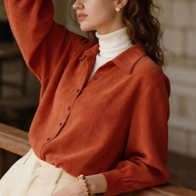 橘色磨毛翻領襯衫女2025年秋冬新款高級感內搭疊穿百搭長袖上衣女
