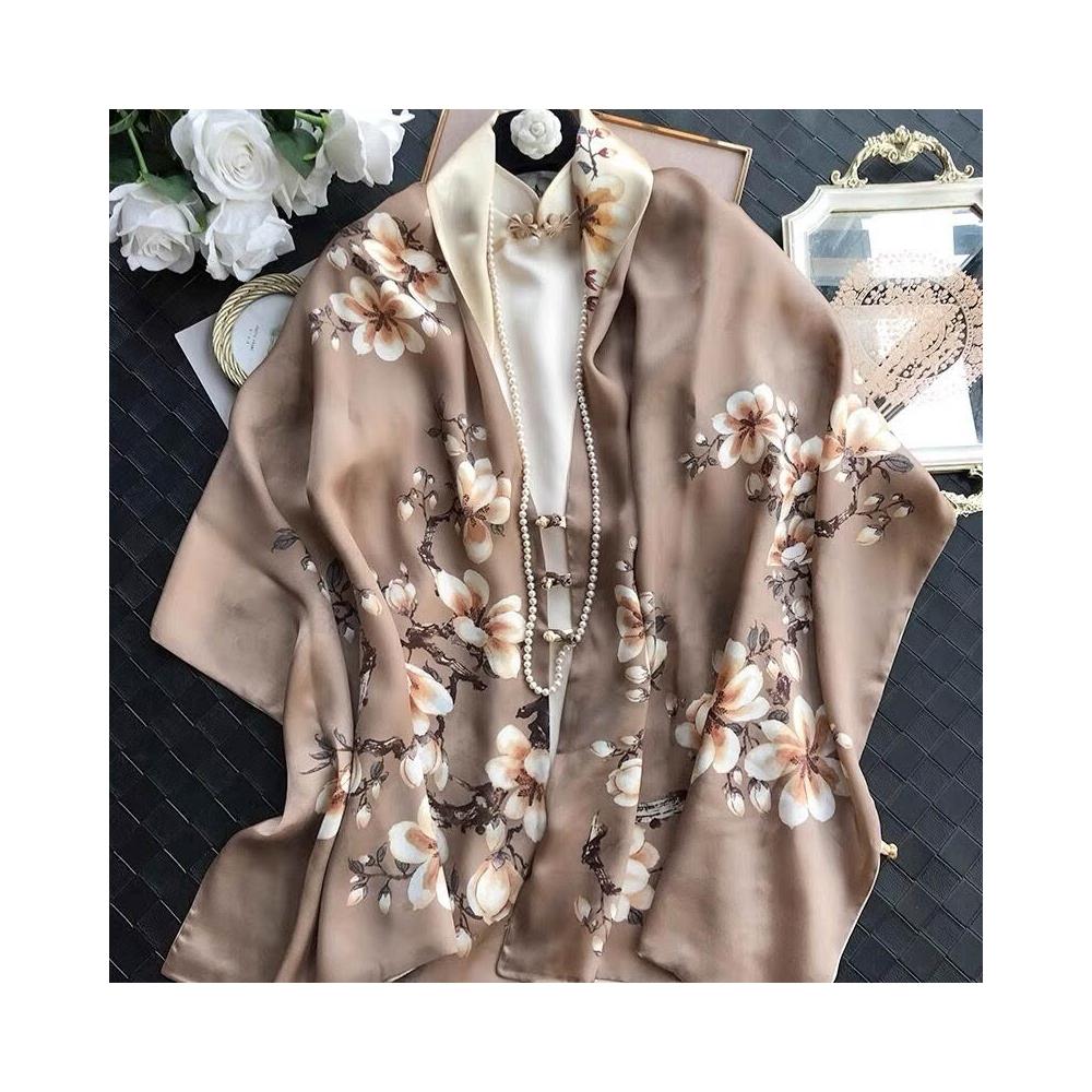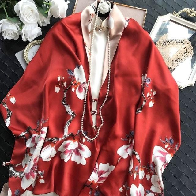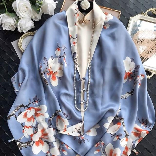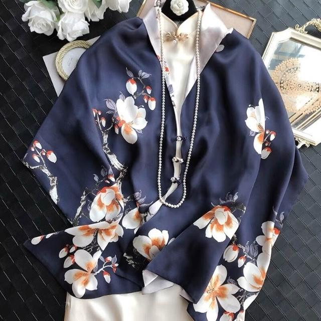 簡優 木棉花旗袍盤扣披肩真絲絲巾搭肩桑蠶絲圍巾雙層雙面春秋送禮媽媽