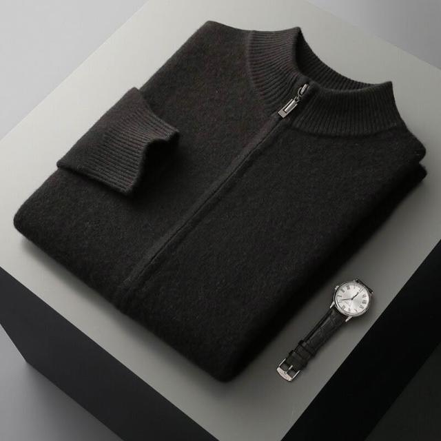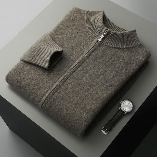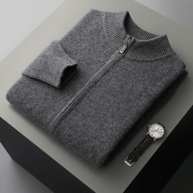 簡優 秋冬季新款純羊毛針織雙股加厚立領羊絨開衫男裝百搭長袖羊絨外套