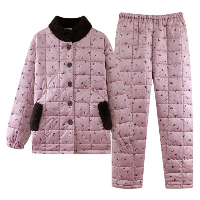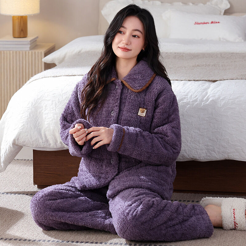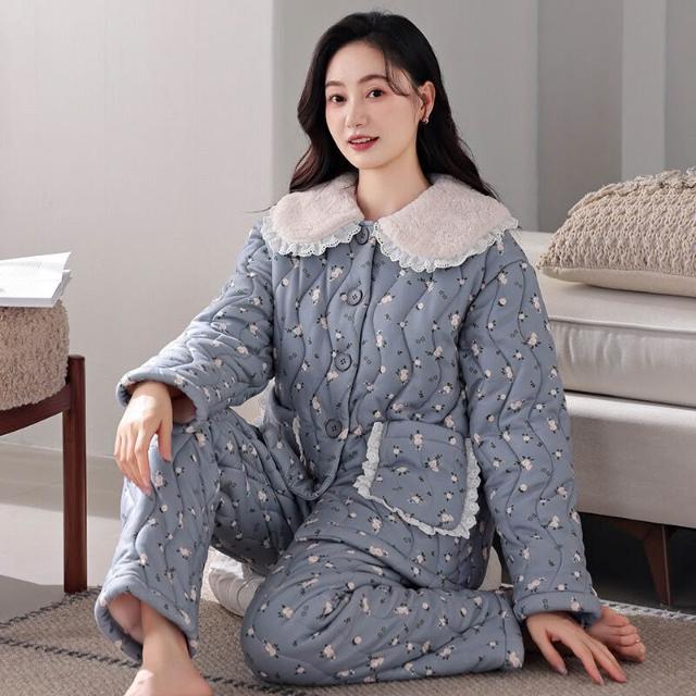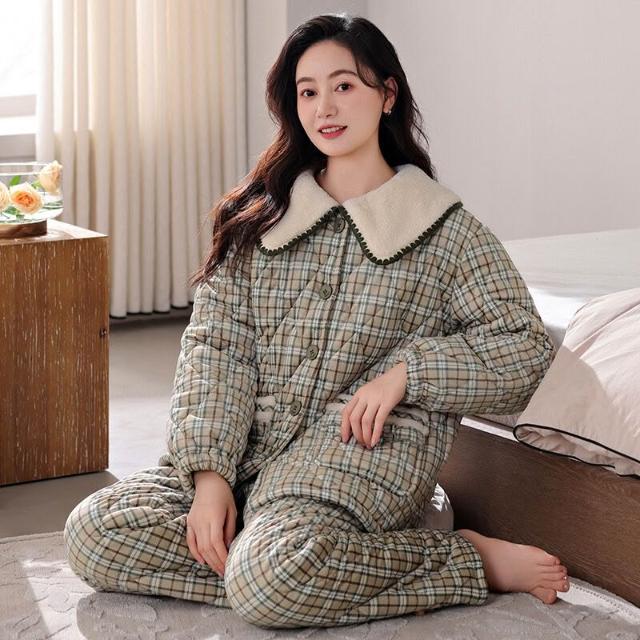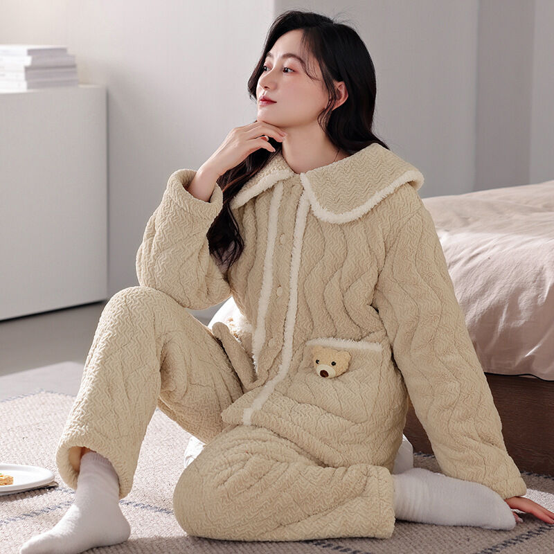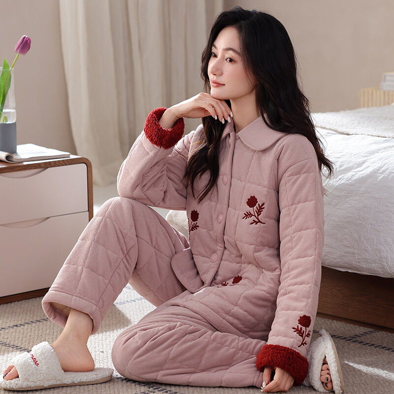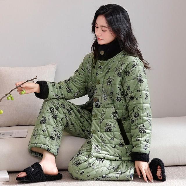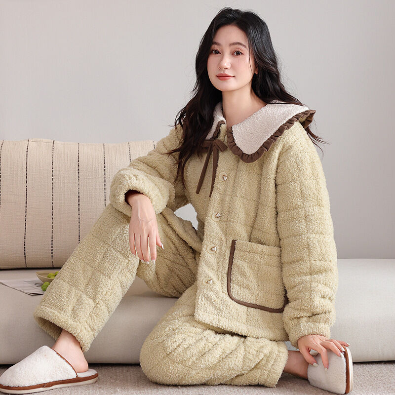 簡優 睡衣女冬季珊瑚絨三層加厚加絨夾棉秋冬法蘭絨超厚冬款媽媽家居服