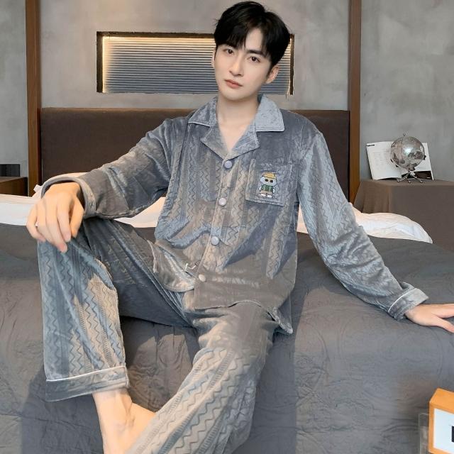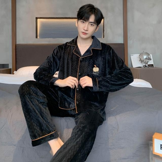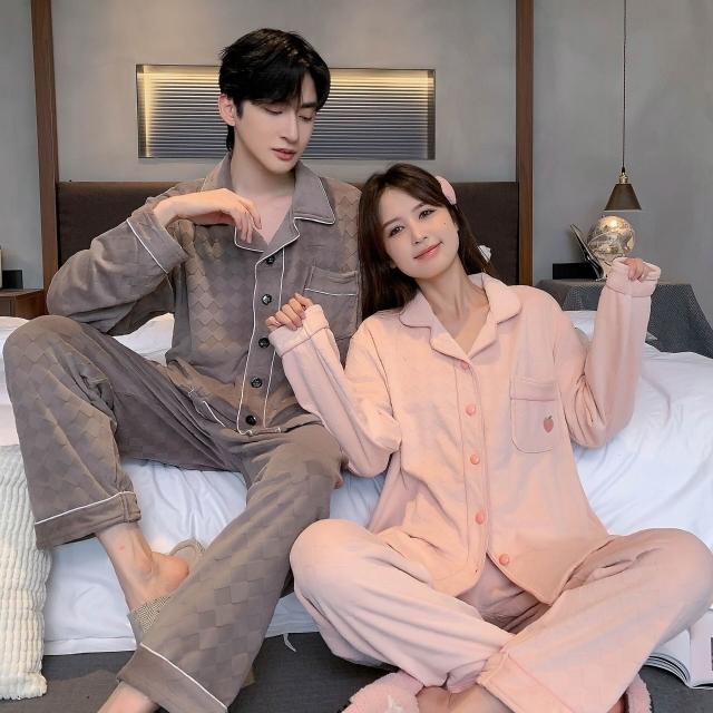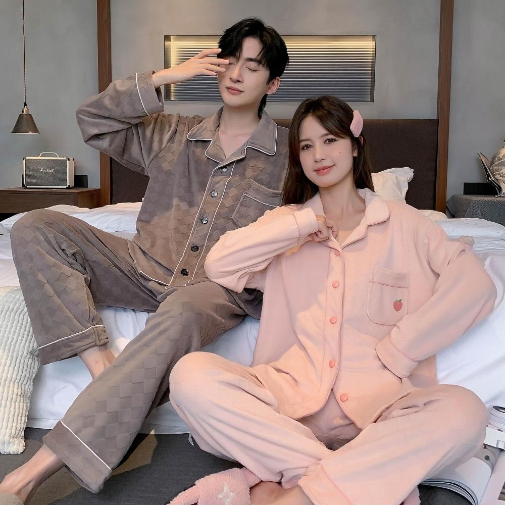 簡優 海島絨情侶睡衣女秋冬季新款保暖家居服套裝簡約高級感薄絨男士