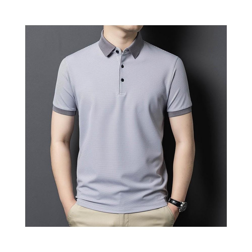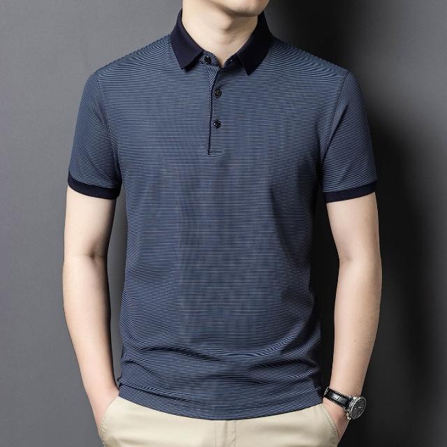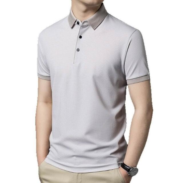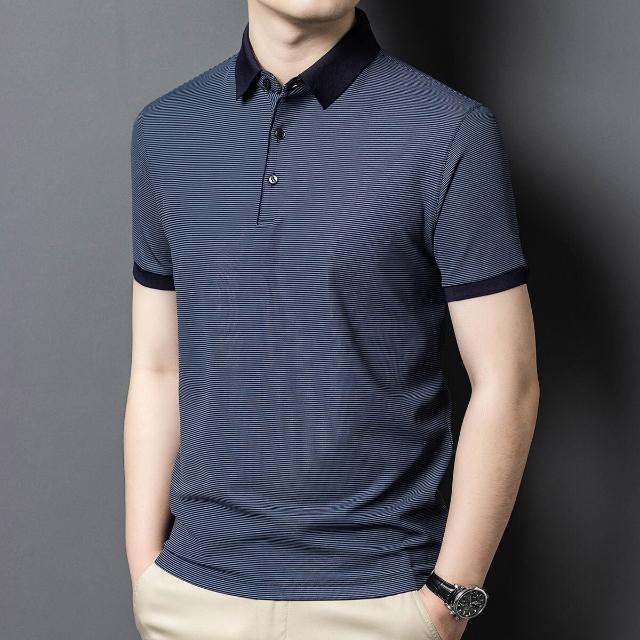 簡優 男士翻領polo衫短袖t恤夏季爸爸裝潮流條紋高檔商務時尚錦氨上衣