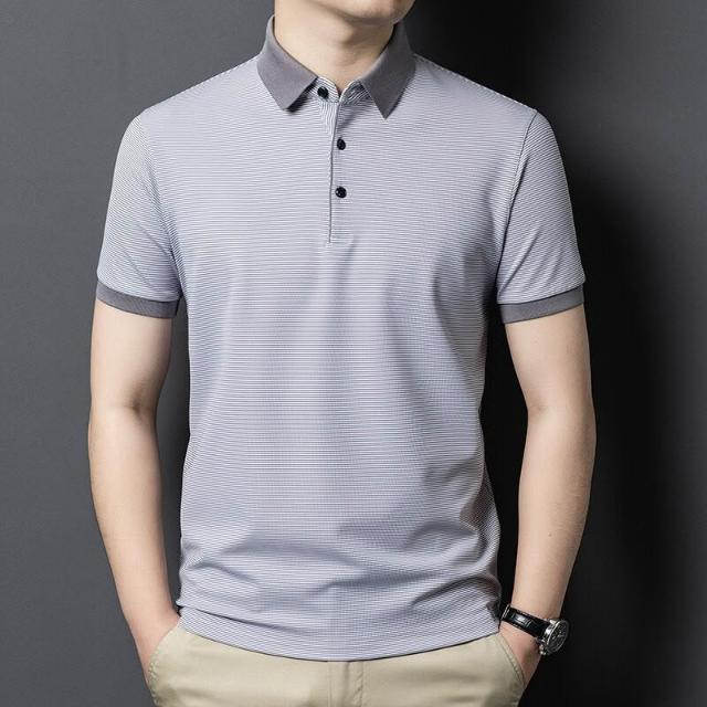 簡優 男士翻領polo衫短袖t恤夏季爸爸裝潮流條紋高檔商務時尚錦氨上衣