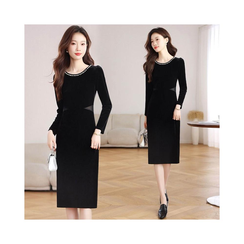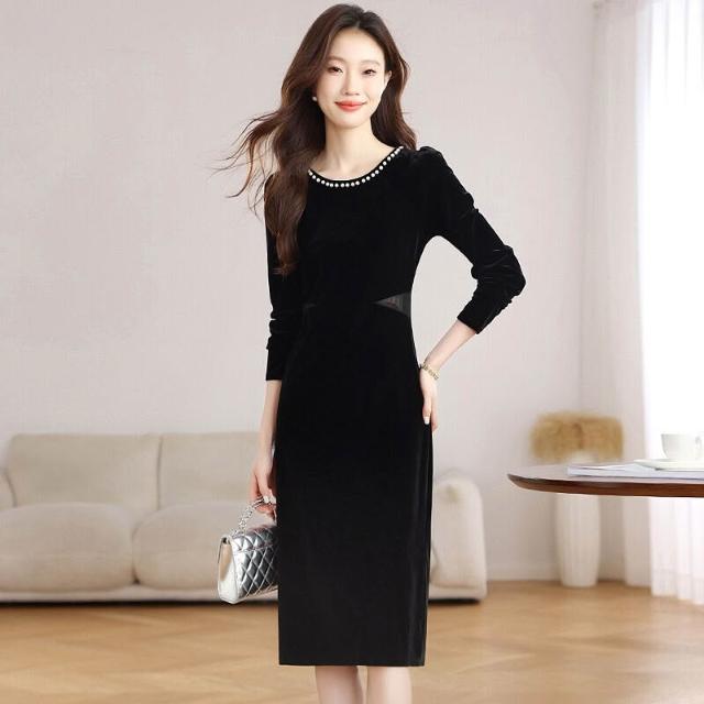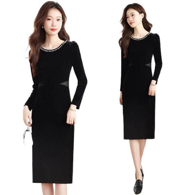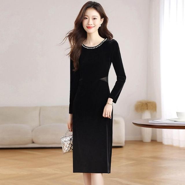 簡優 法式赫本風絲絨連衣裙春裝款女高級感小黑裙高端氣質禮服包臀裙子