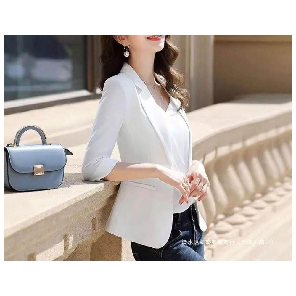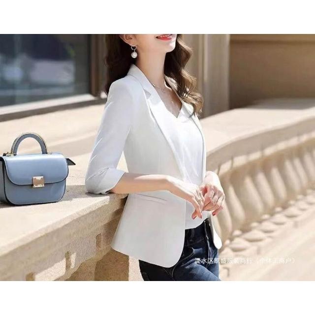 簡優 白色西裝外套女士薄款夏季休閑職業上衣短小個子七分袖西服早春秋