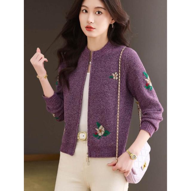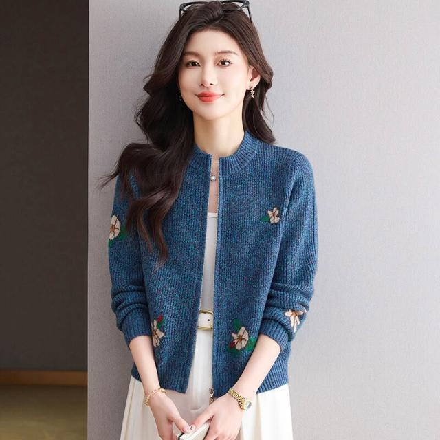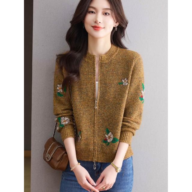 簡優 高級感小個子短款毛衣開衫外套女2026春裝新款雙拉鏈針織外搭上衣