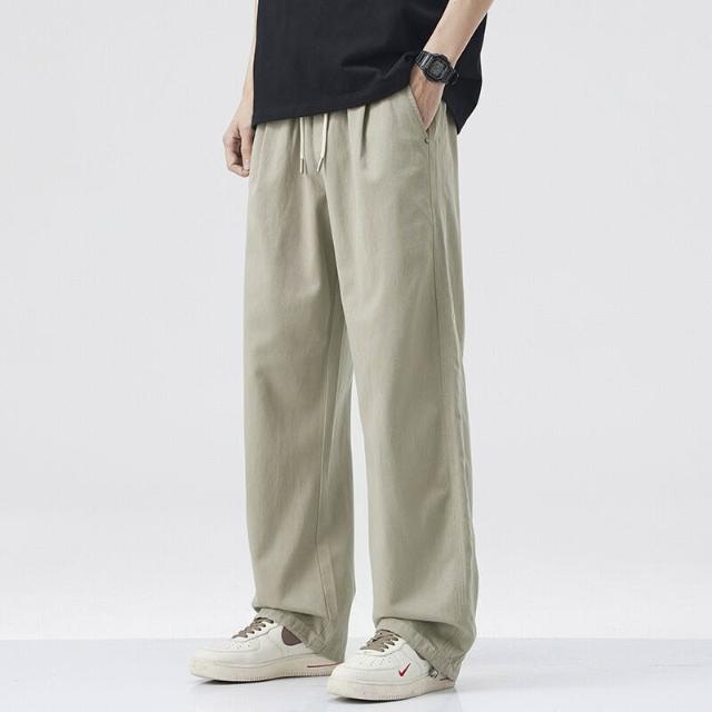 簡優 新款春夏萊賽爾天絲休閑褲男美式潮流寬松直筒日系復古長褲子