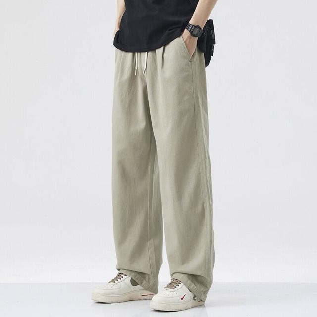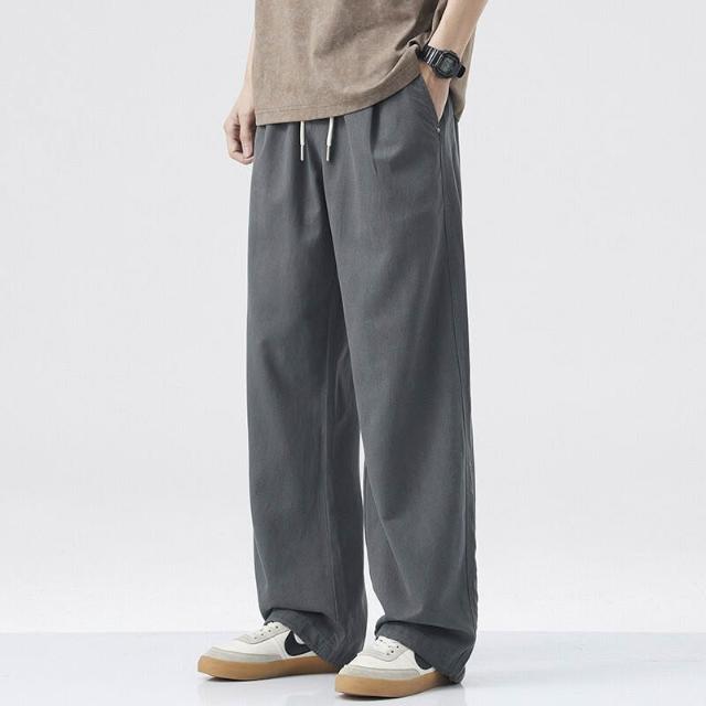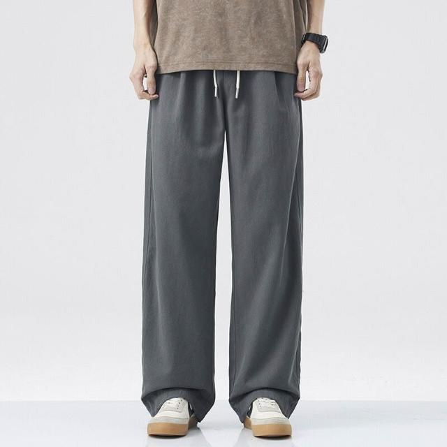 簡優 新款春夏萊賽爾天絲休閑褲男美式潮流寬松直筒日系復古長褲子