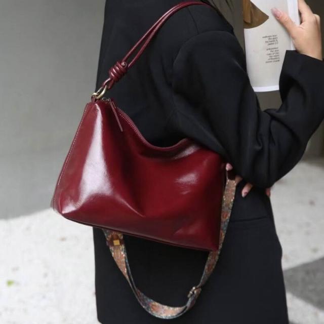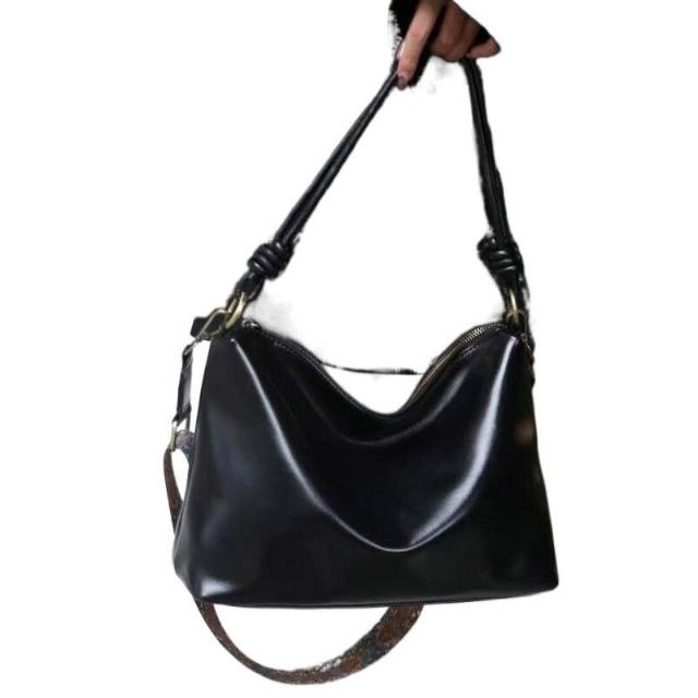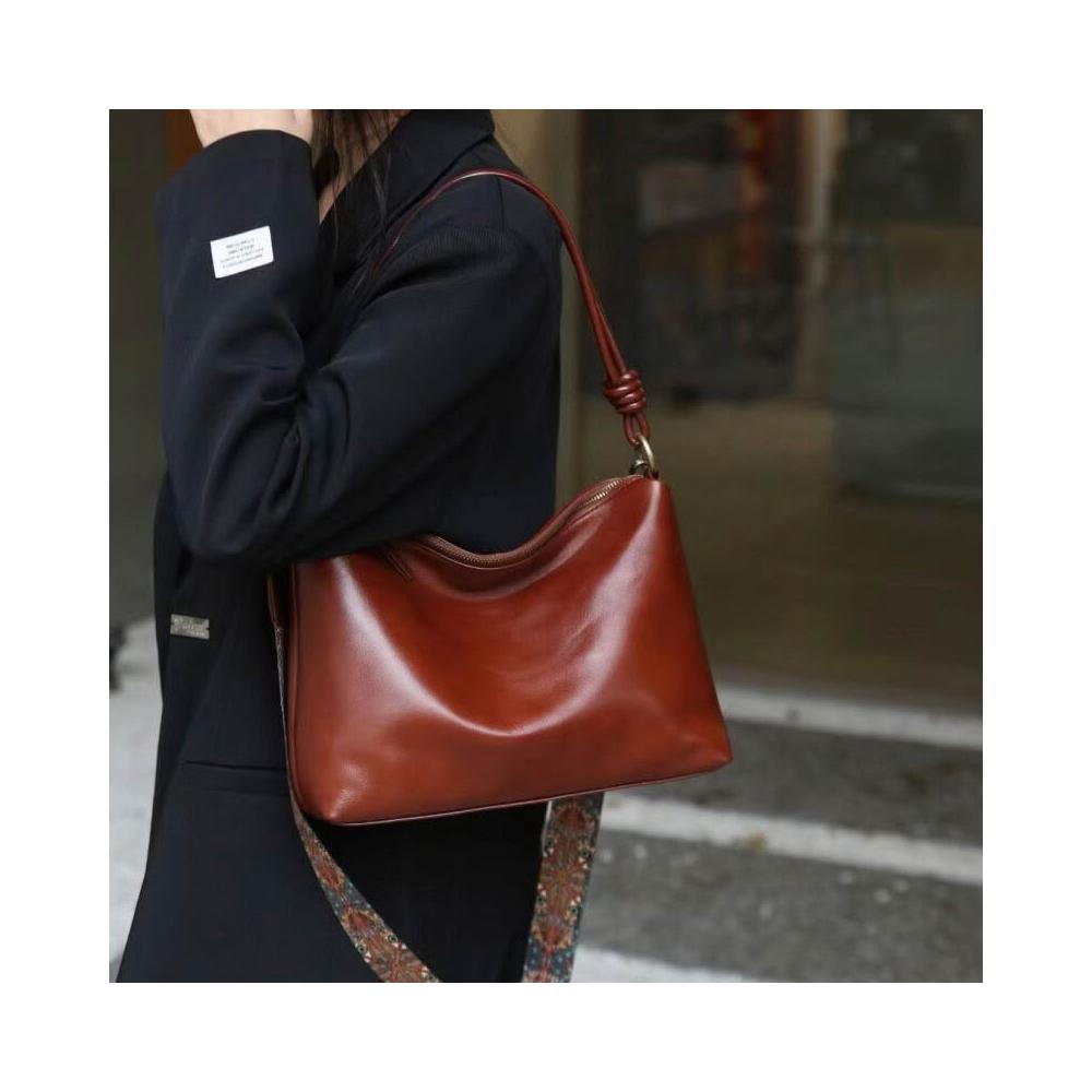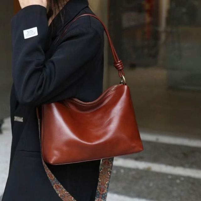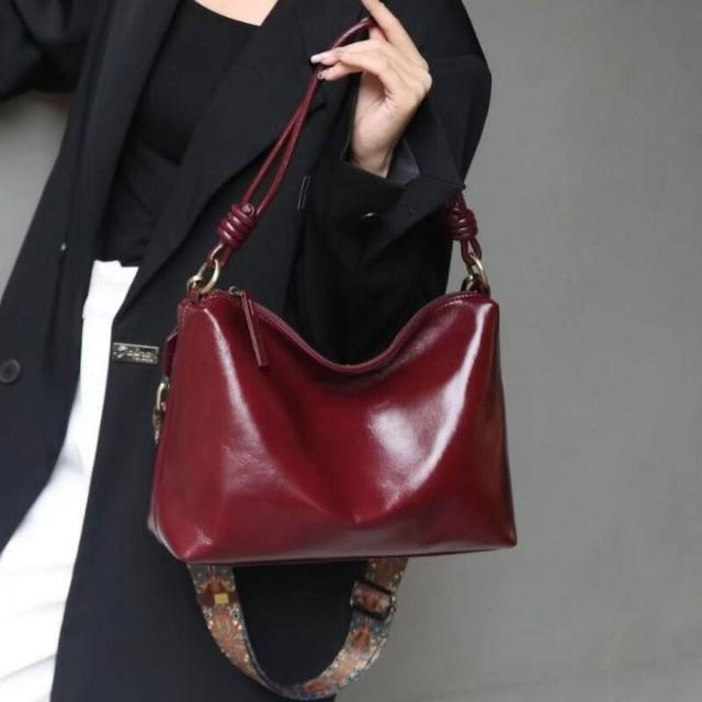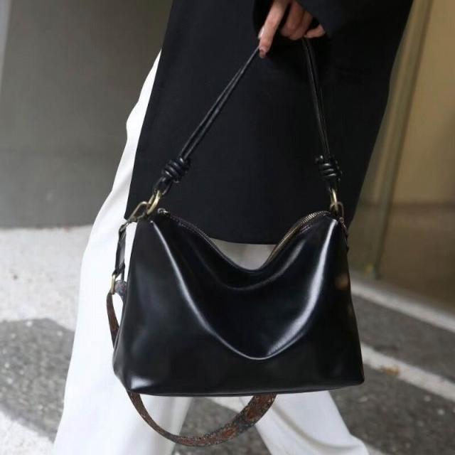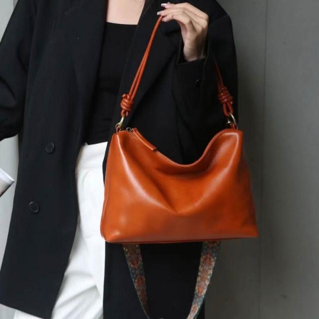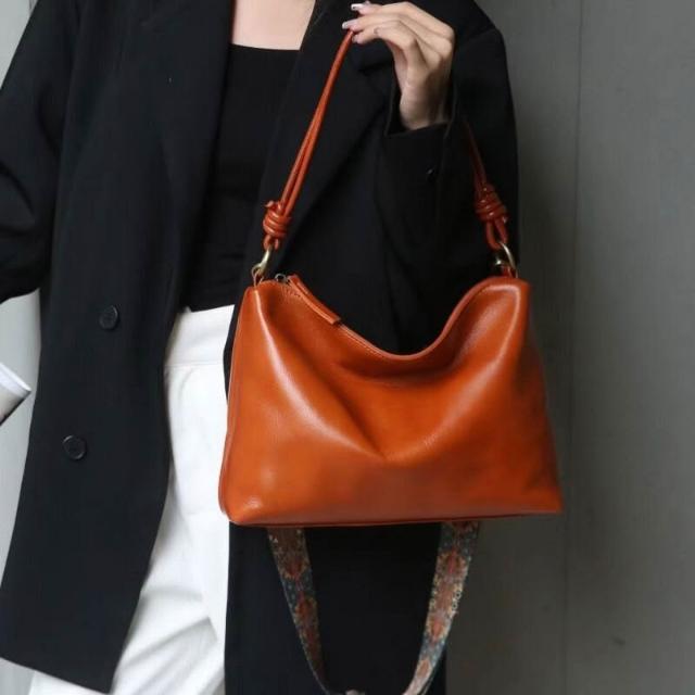 簡優 真皮女包腋下包寬肩帶頭層牛皮單肩女士斜挎包批發半坡大容量