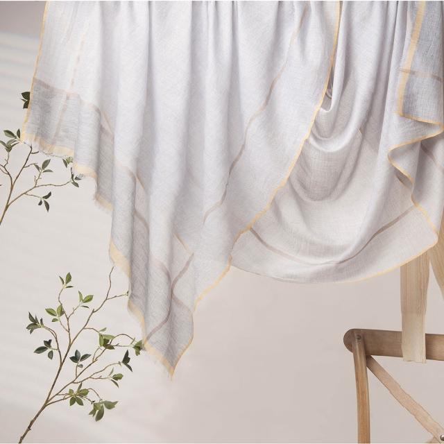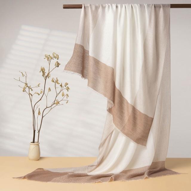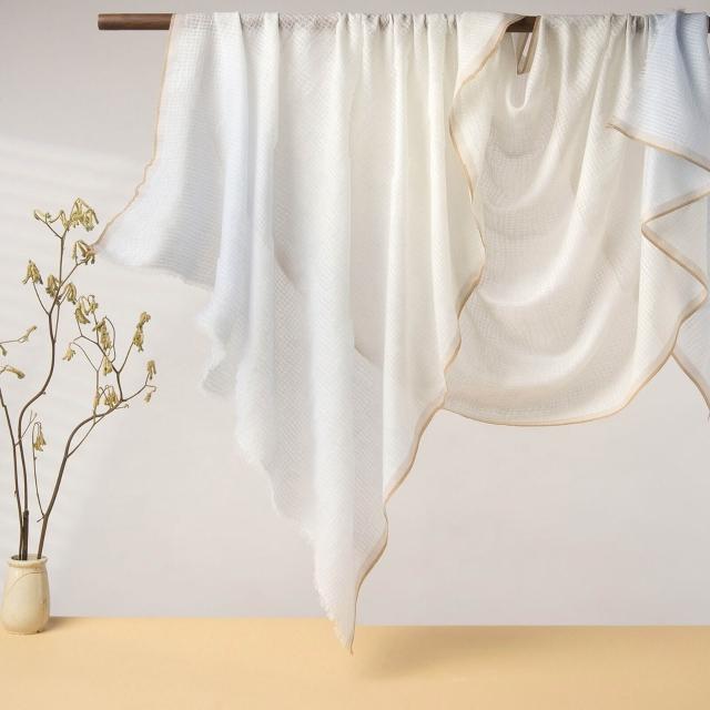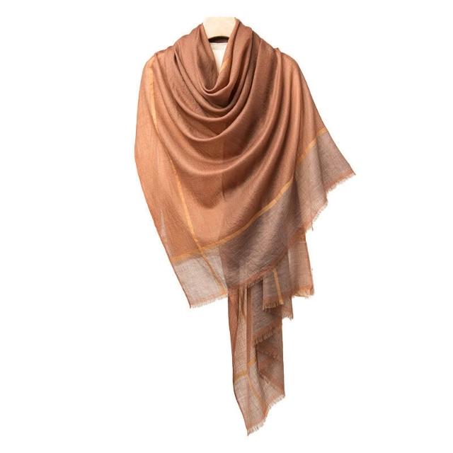簡優 新款女春夏薄款羊毛精紡色織格子純色格子圍巾空調房披肩女百搭