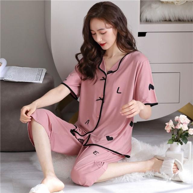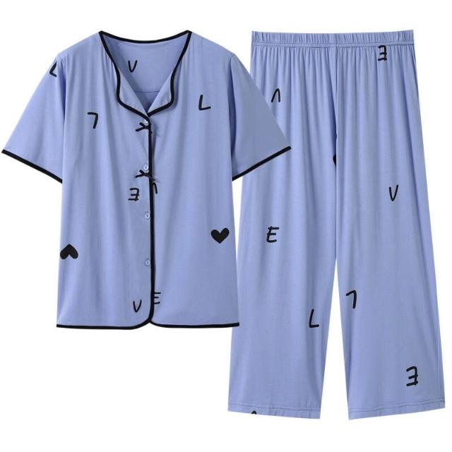 簡優 中年睡衣女媽媽夏季短袖莫代爾七分褲冰絲套裝夏款棉綢女士家居服