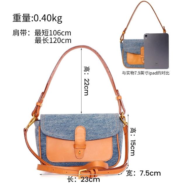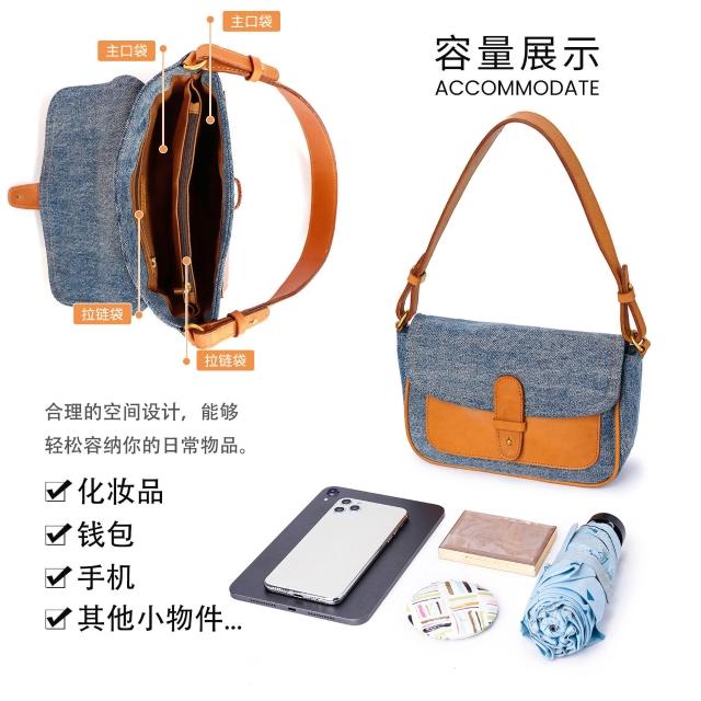 簡優 新款時尚女士斜挎包牛仔布拼接植鞣皮腋下包女包復古簡約休閑包包
