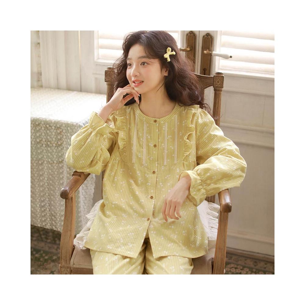 簡優 年春夏新品日系小花純棉棉紗印花長袖長褲睡衣女居家服套裝