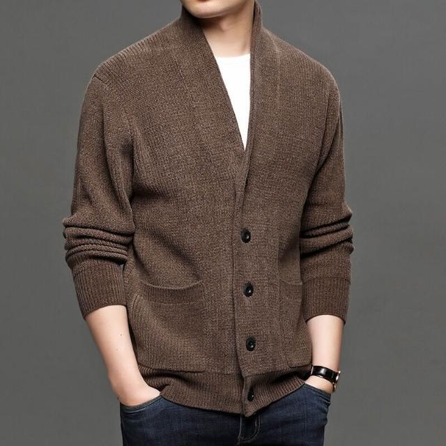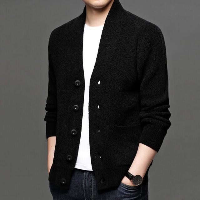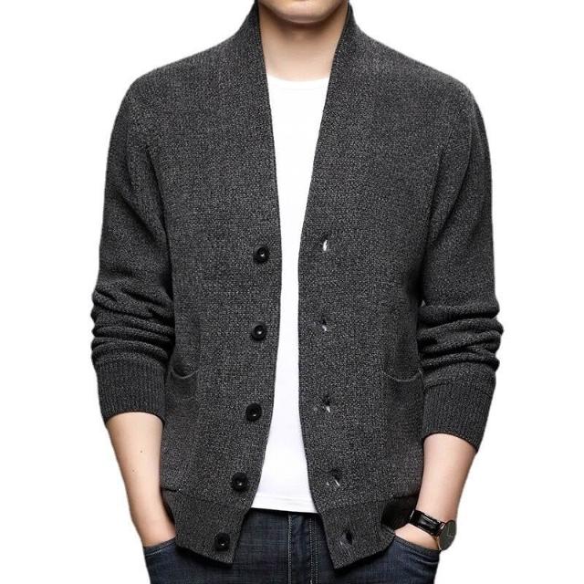 簡優 秋冬裝新品中年男式針織毛衣休閑薄款單排扣寬松針織開衫雪尼外套